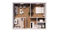 1 Dormitorio, 1 Baño, 500 pies²Disponible AhoraGalería del Modelo