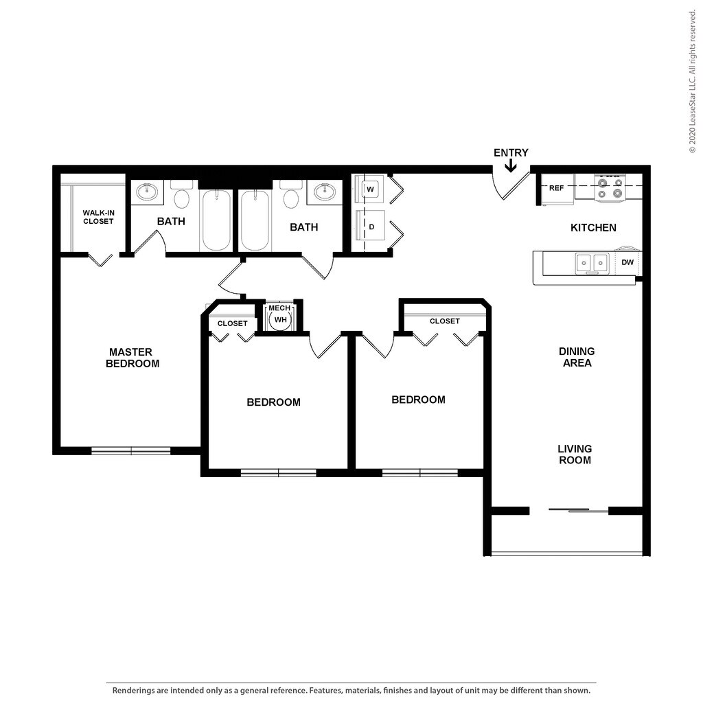 2 Dormitorios, 2 Baños, 951 pies²Galería del Modelo