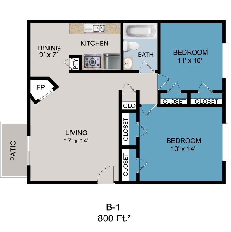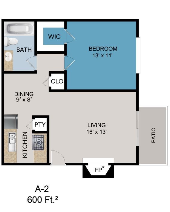 1 Dormitorio, 1 Baño, 600 pies²Disponible AhoraGalería del Modelo