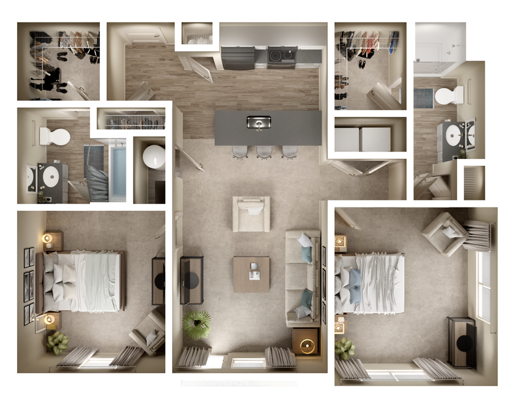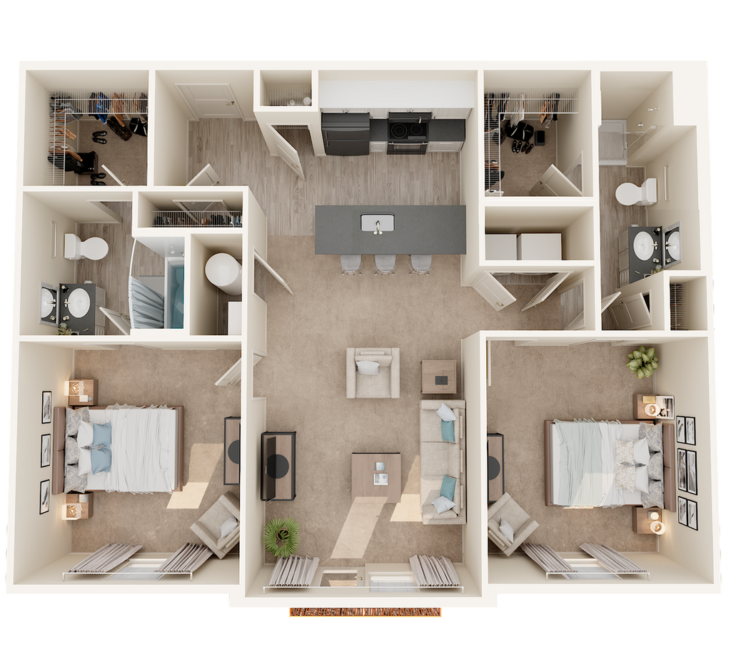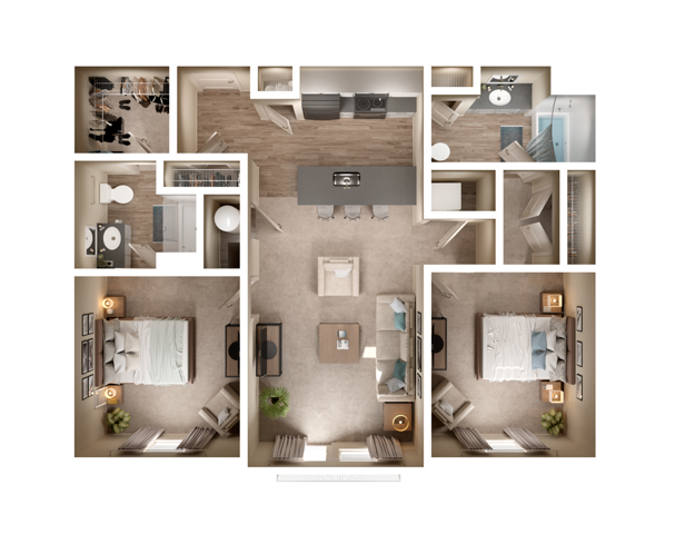 2 Dormitorios, 2 Baños, 1100 pies²Disponible AhoraGalería del Modelo