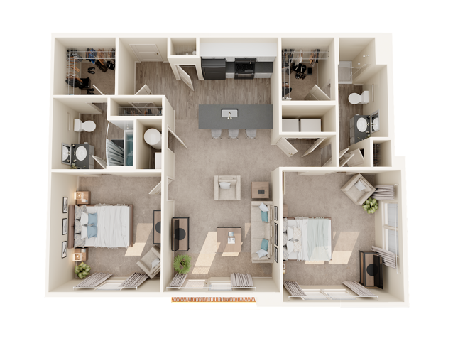 Modelo de apartamento: The MiamiDesde $1,2121 Dormitorio, 1 Baño, 635 sq ftDisponible Ahora![]()