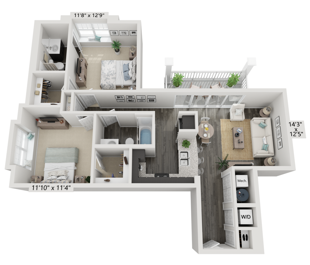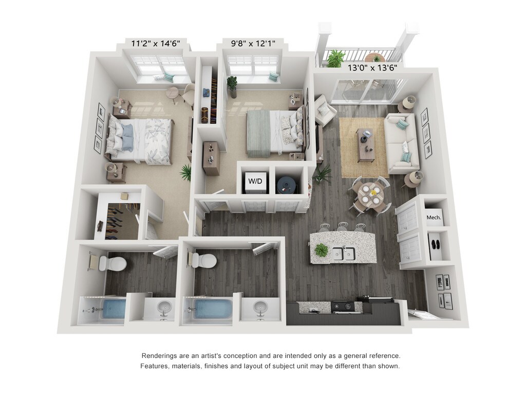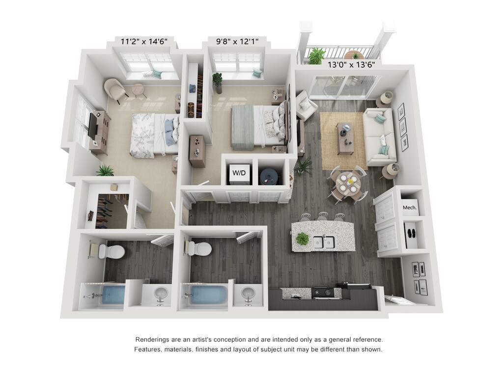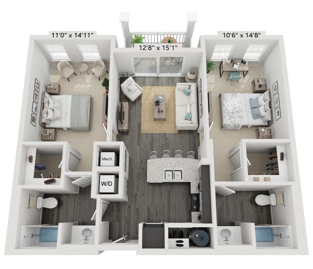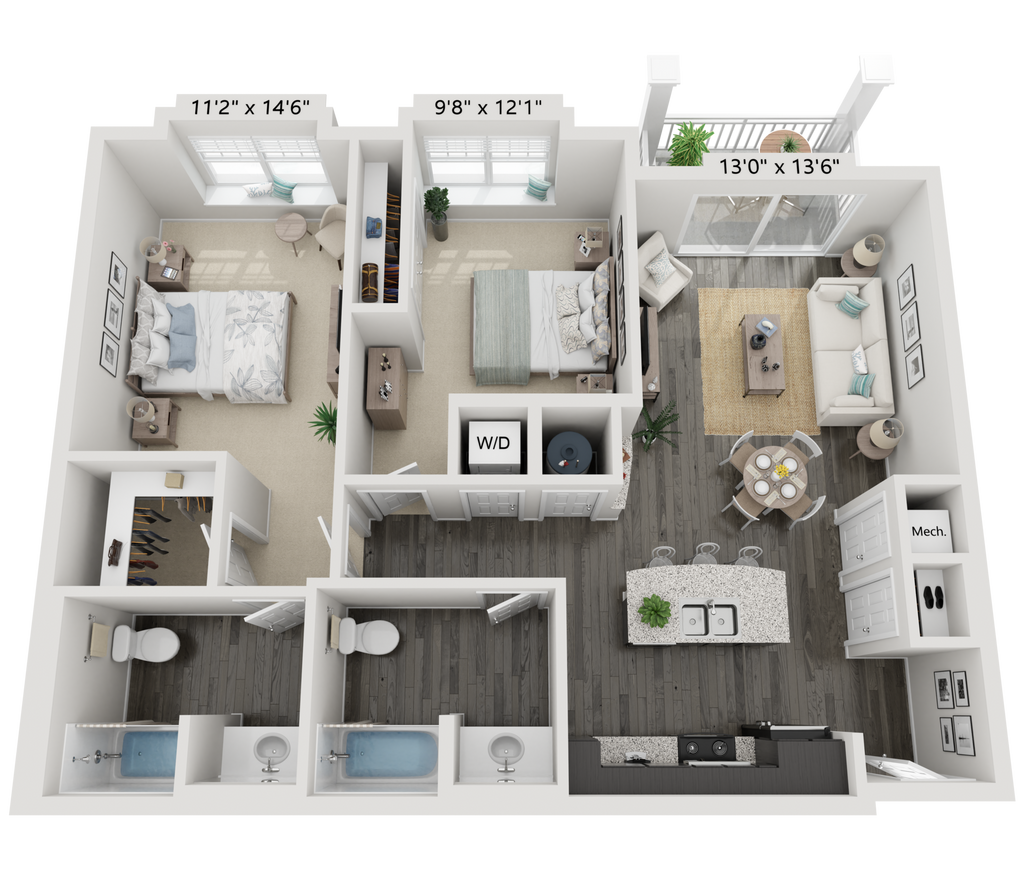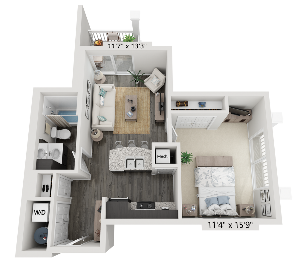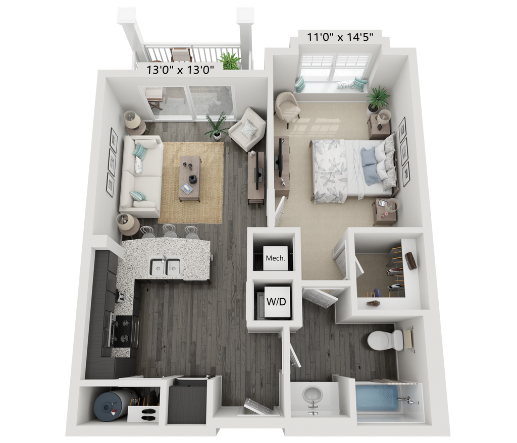 1 Dormitorio, 1 Baño, 888 pies²El más grandeEsta opción tiene las unidades más grandes para este modeloGalería del Modelo