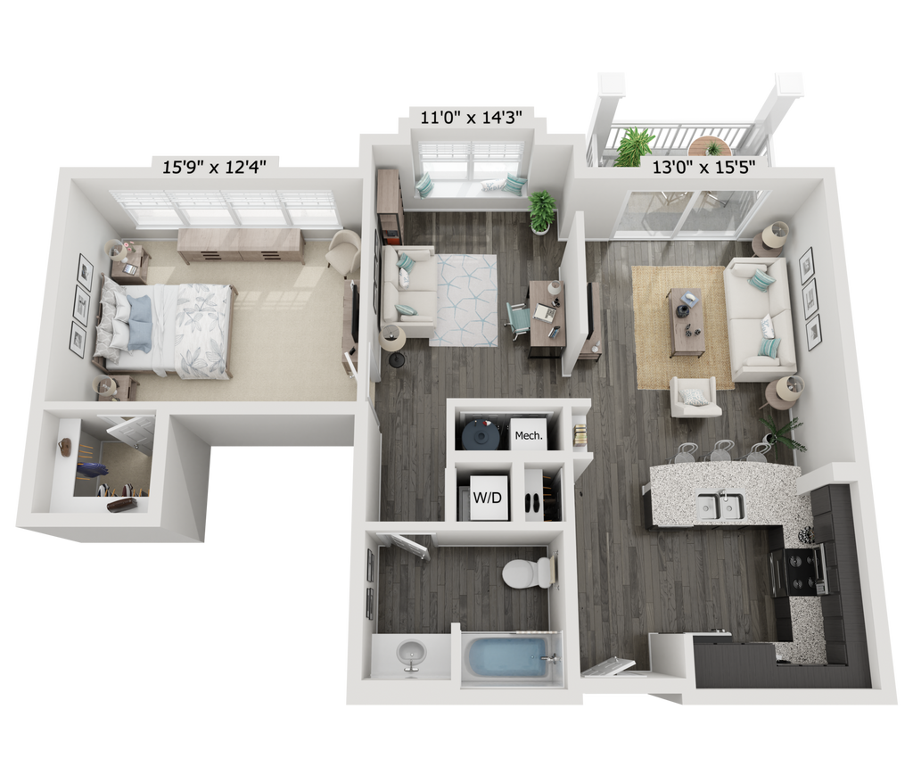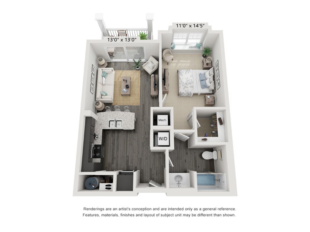 Modelo de apartamento: Wake$1,8651 Dormitorio, 1 Baño, 601 sq ftNo Disponible![]()