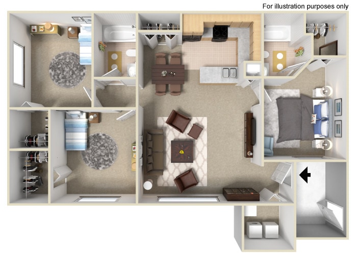 Modelo de apartamento: The Catalina$1,3162 Dormitorios, 2 Baños, 969 sq ftDisponible Ahora![]()