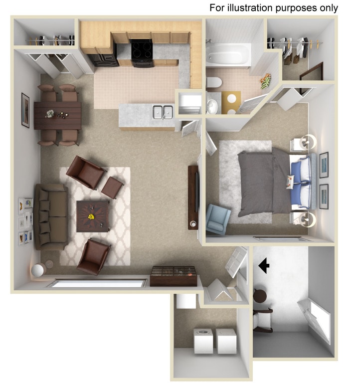 1 Dormitorio, 1 Baño, 709 pies²Galería del Modelo