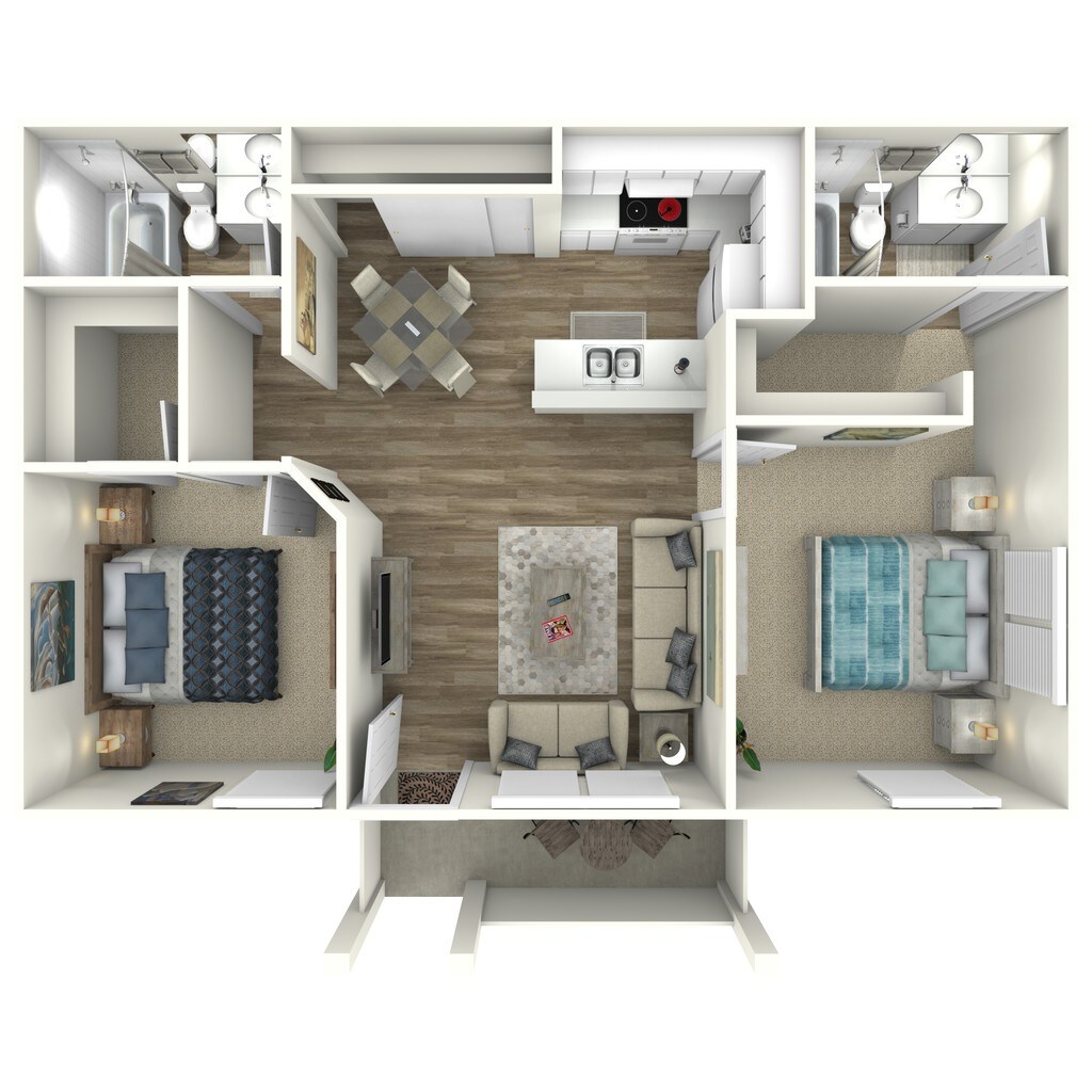 2 Dormitorios, 2 Baños, 800 pies²Disponible AhoraGalería del Modelo