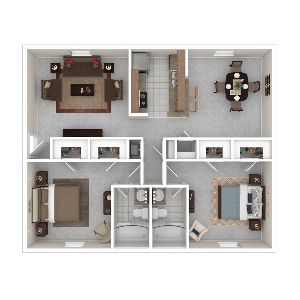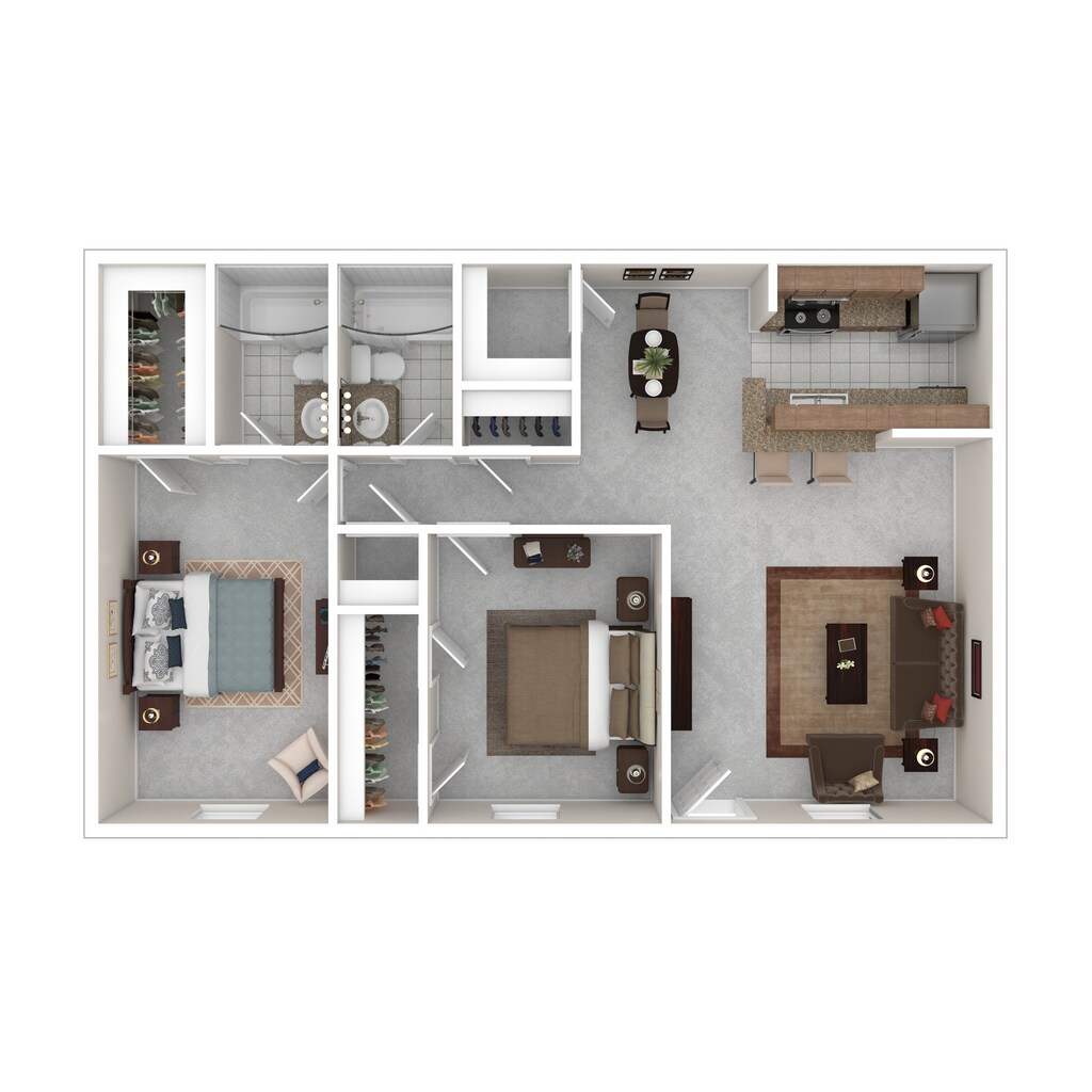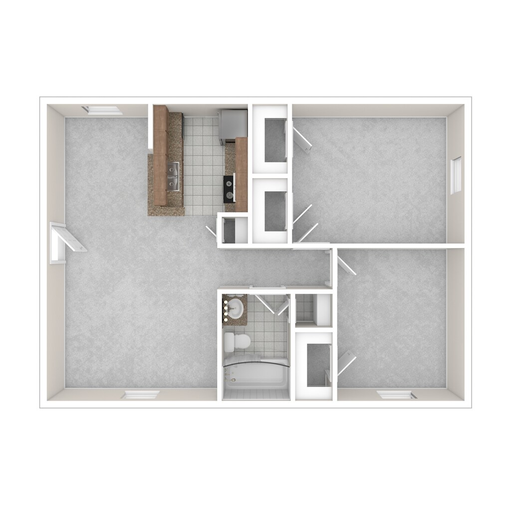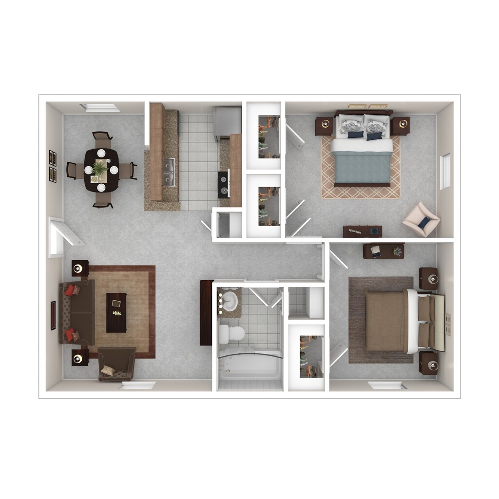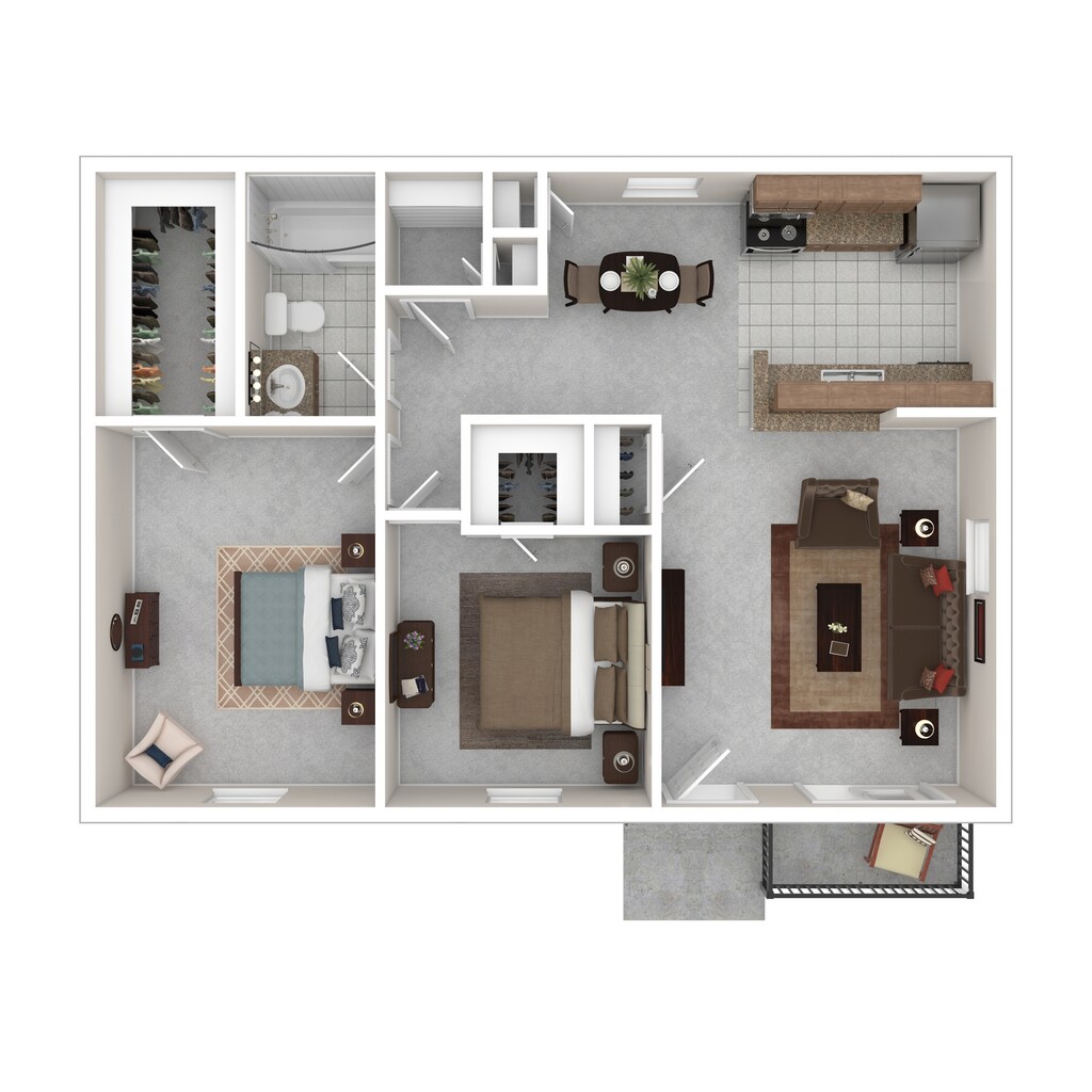 2 Dormitorios, 1 Baño, 864 pies²Disponible AhoraGalería del Modelo