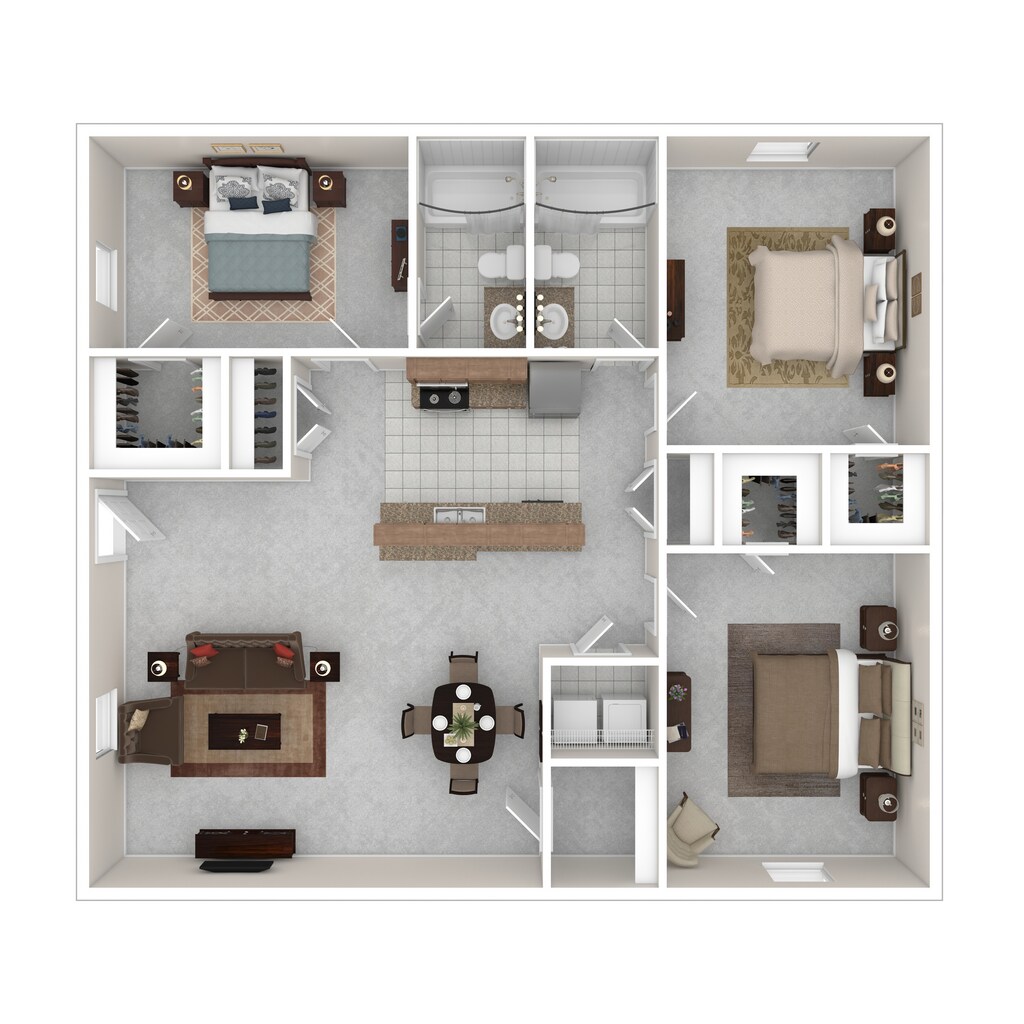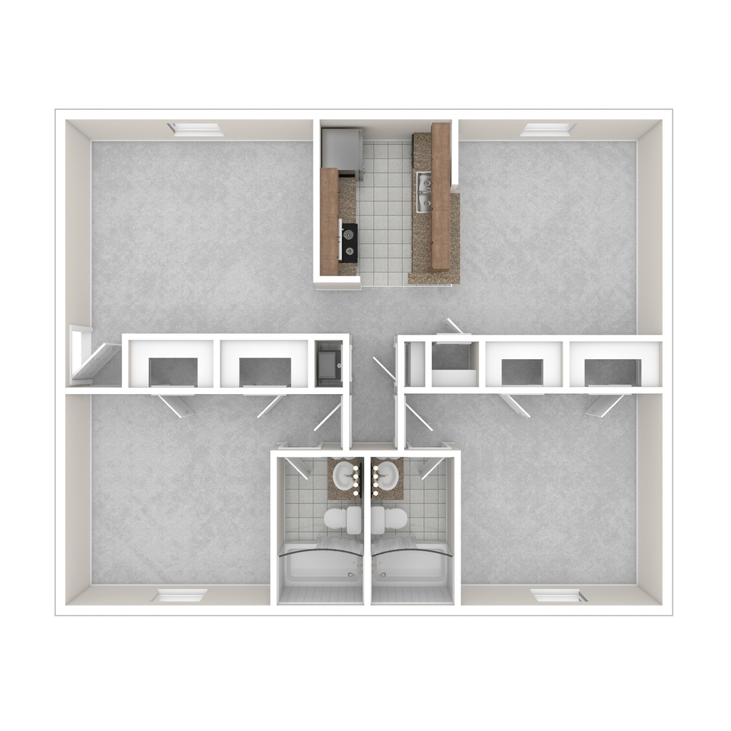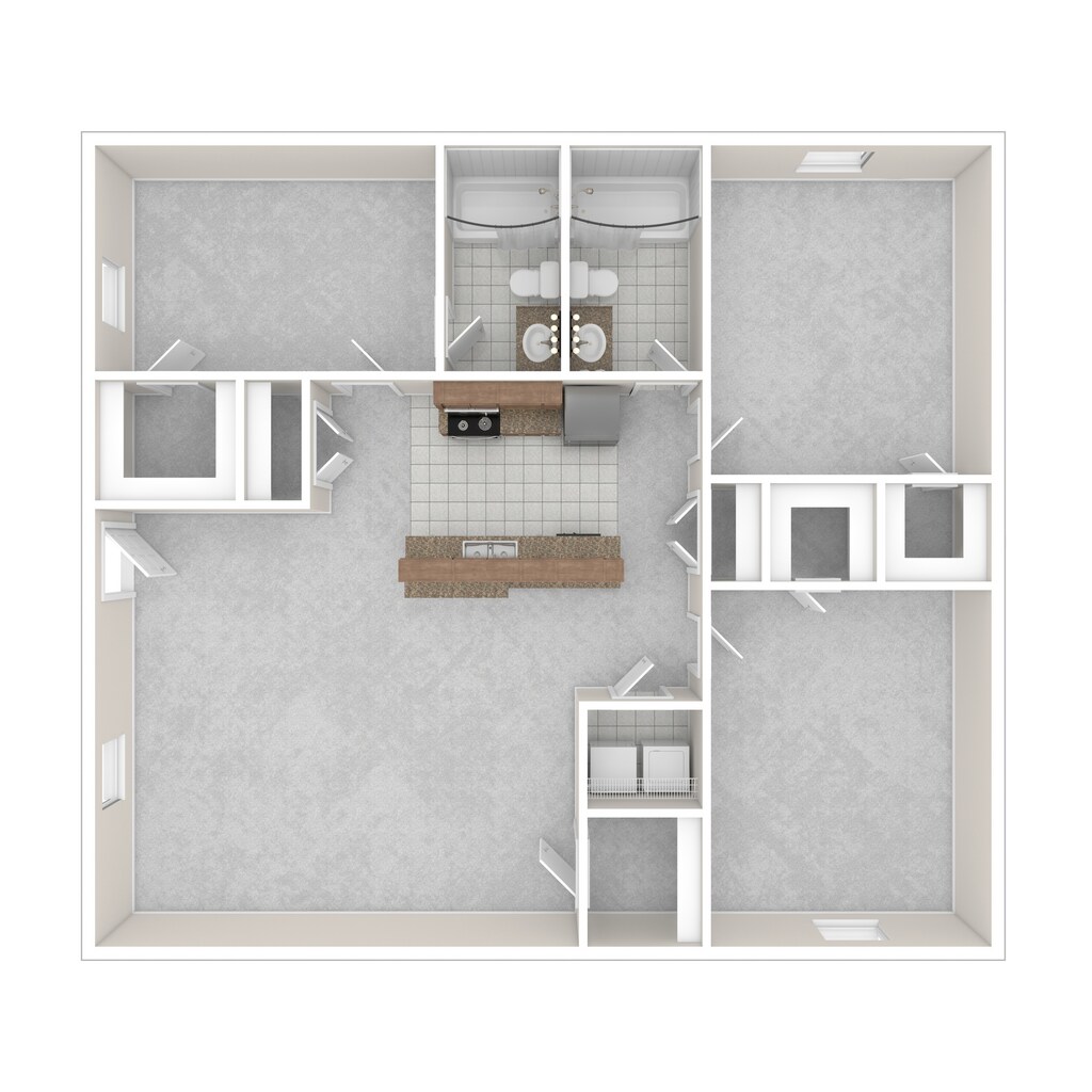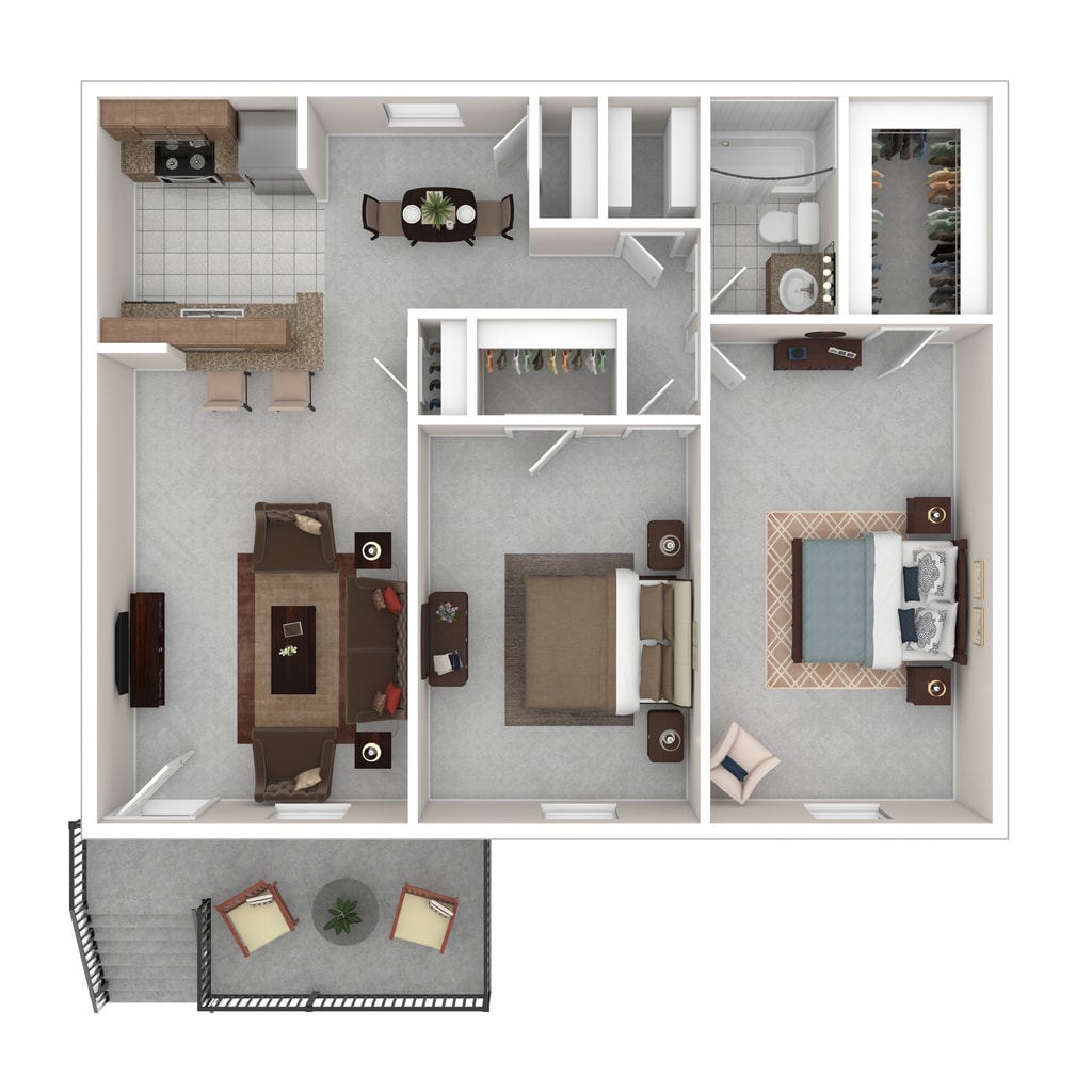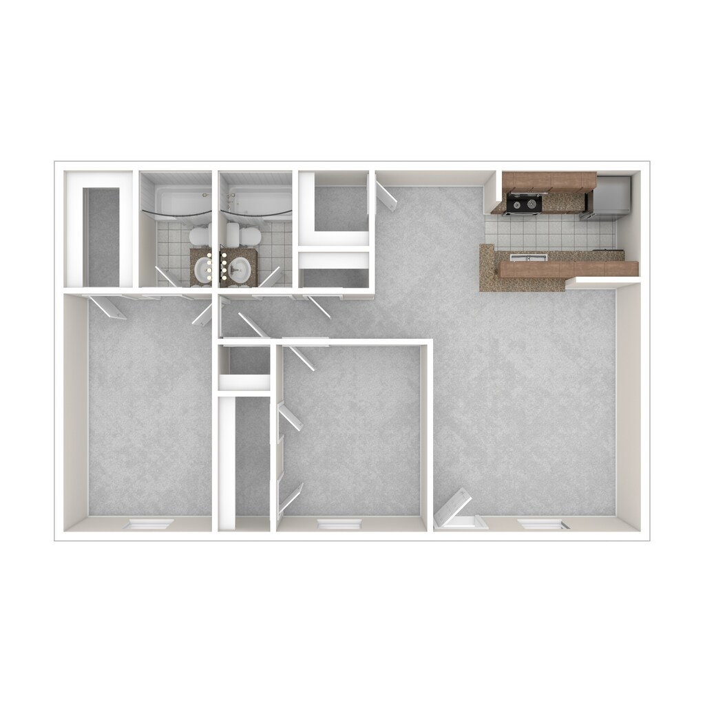 2 Dormitorios, 1 Baño, 864 pies²Disponible AhoraGalería del Modelo