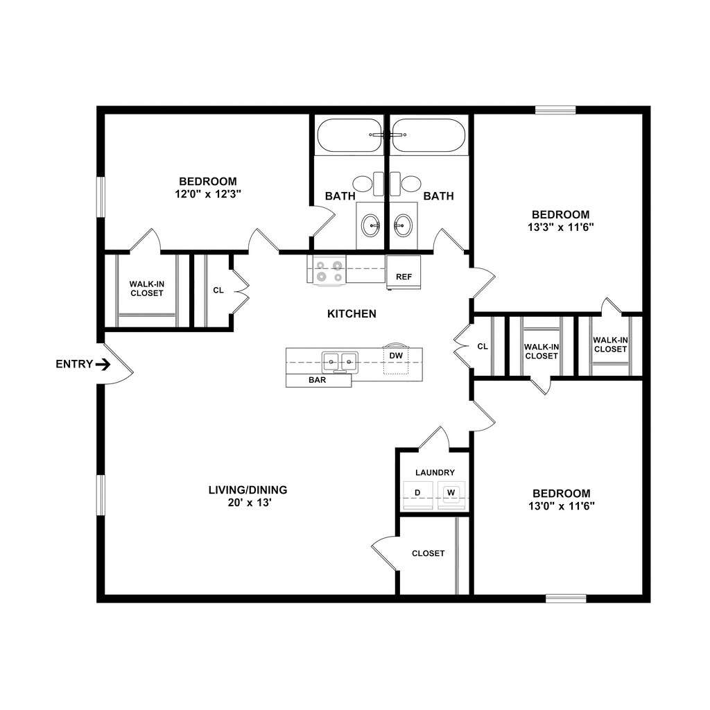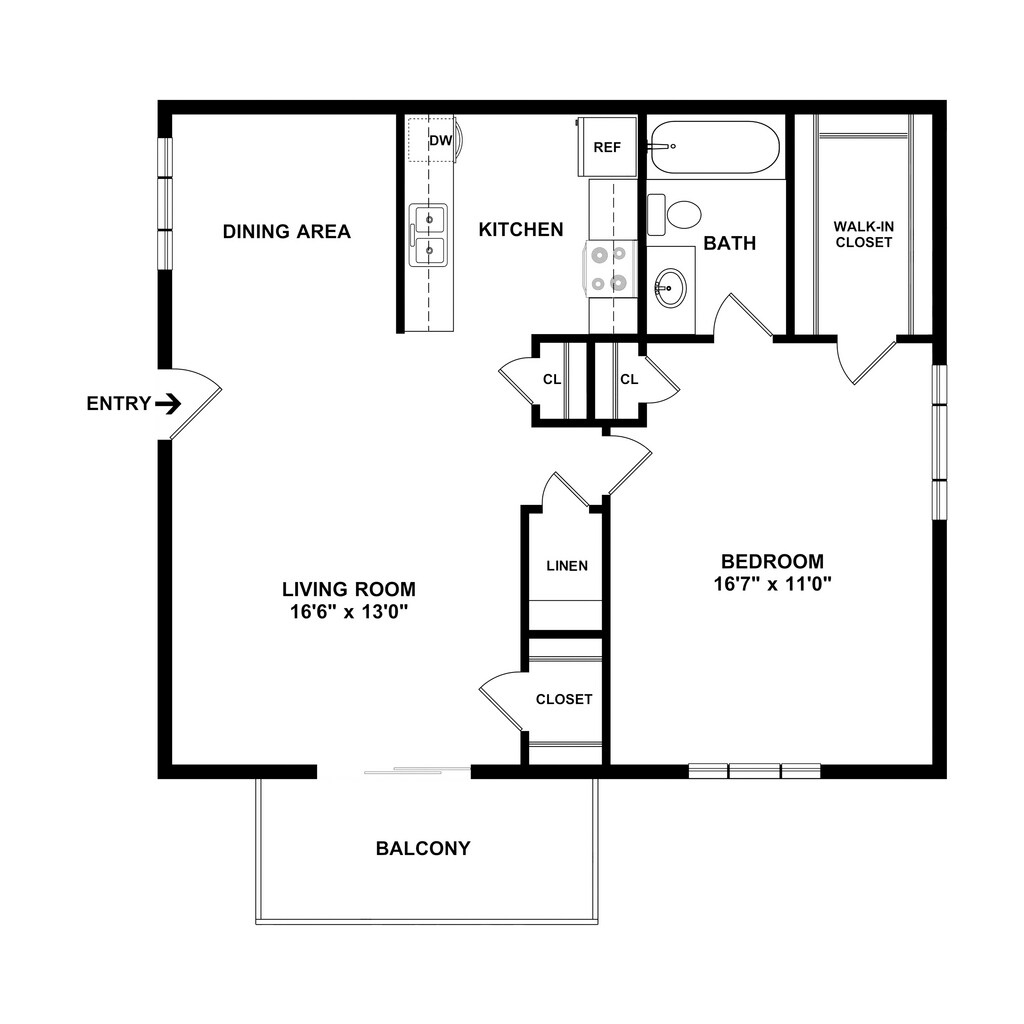 Modelo de apartamento: B-11 Dormitorio, 1 Baño, 672 sq ftDisponible AhoraPlanosFotos![]()