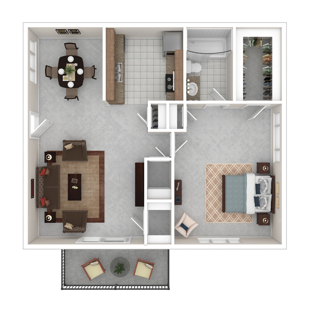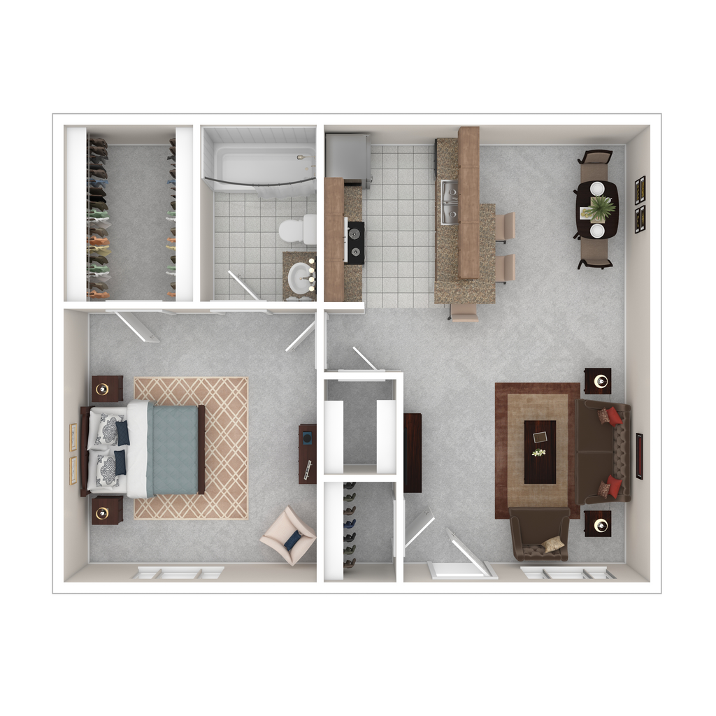 1 Dormitorio, 1 Baño, 758 pies²Disponible AhoraGalería del Modelo