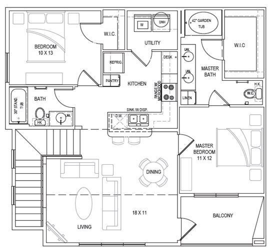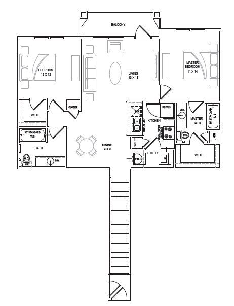 1 Dormitorio, 1 Baño, 747 pies²Galería del Modelo