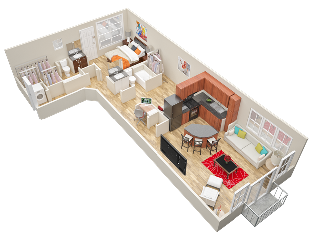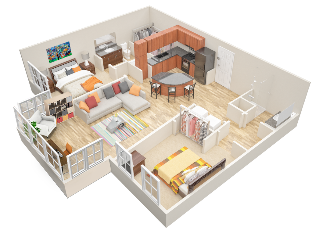 1 Dormitorio, 1 Baño, 875 pies²Disponible AhoraGalería del Modelo