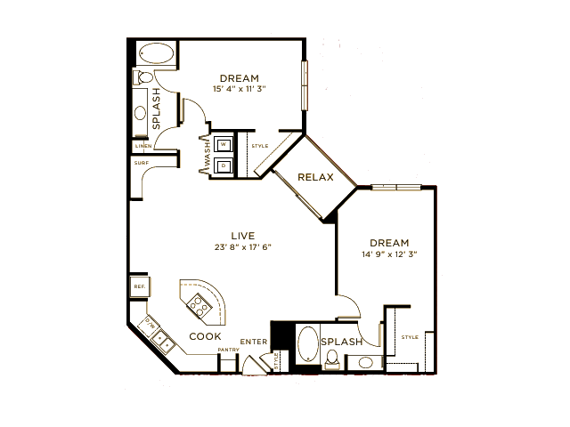 Modelo de apartamento: A2 Loft1 Dormitorio, 2 Baños, 1166 sq ftDisponible Ahora![]()