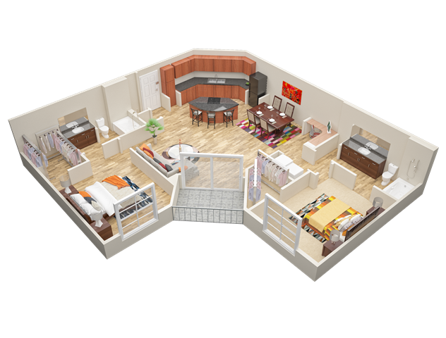 1 Dormitorio, 2 Baños, 1166 pies²Disponible AhoraGalería del Modelo