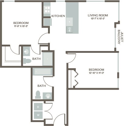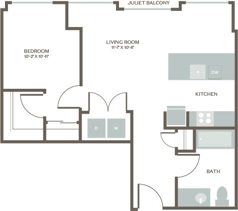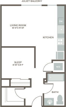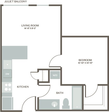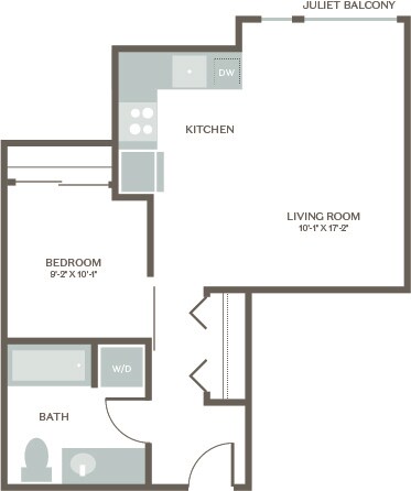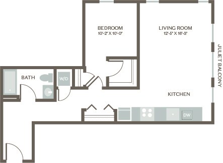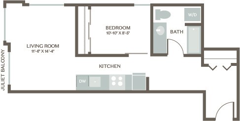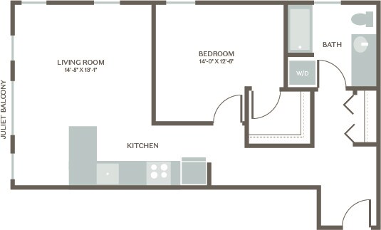 Estudio, 1 Baño, 607 pies²Galería del Modelo