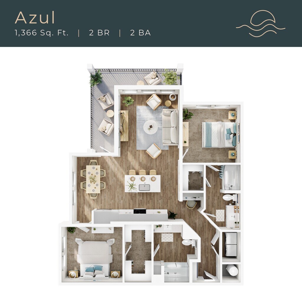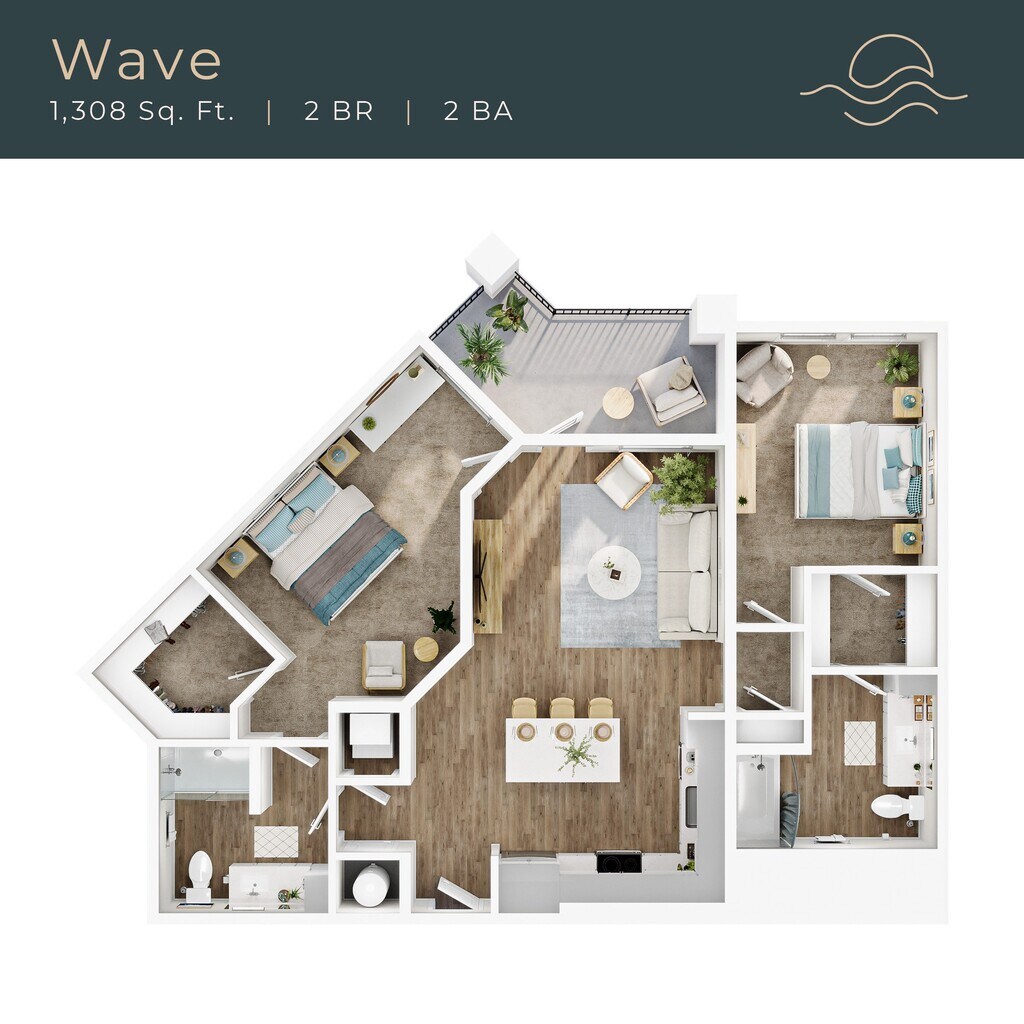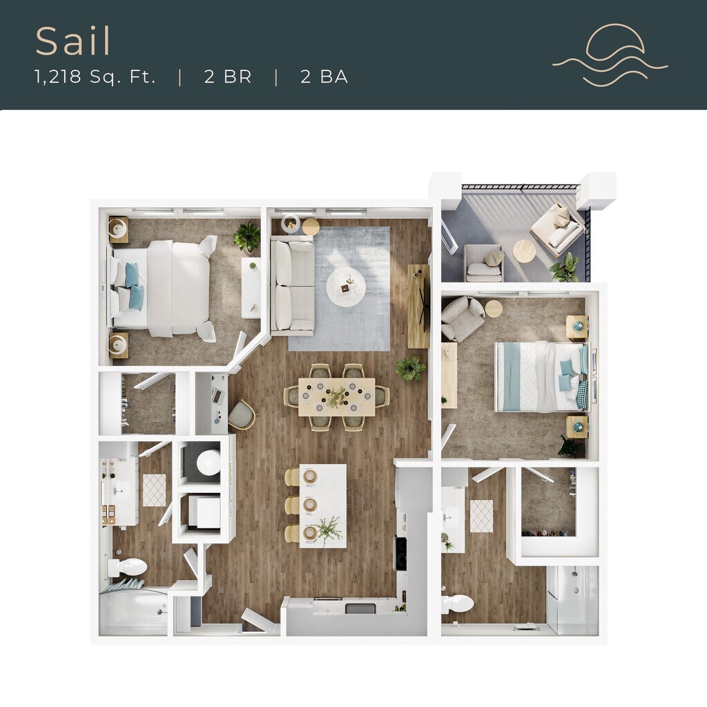 Solana - Plano 2 Unidad de apartamento: 101Modelo de apartamento: Solana$2,0152 Dormitorios, 1 Baño, 1236 sq ftDisponible June 30, 2026Tide
