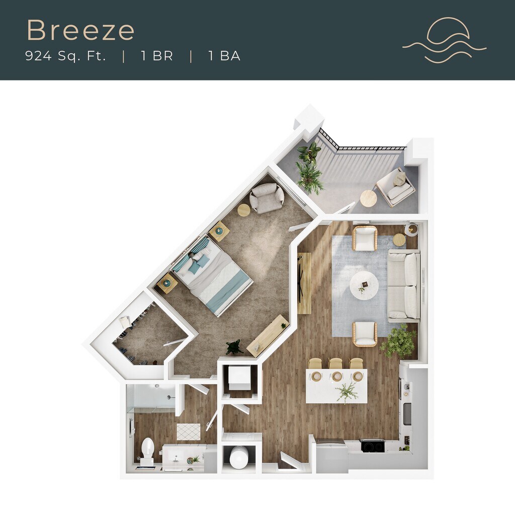 Modelo de apartamento: BreezeDesde $1,6501 Dormitorio, 1 Baño, 924 sq ftDisponible June 30, 2026![]()