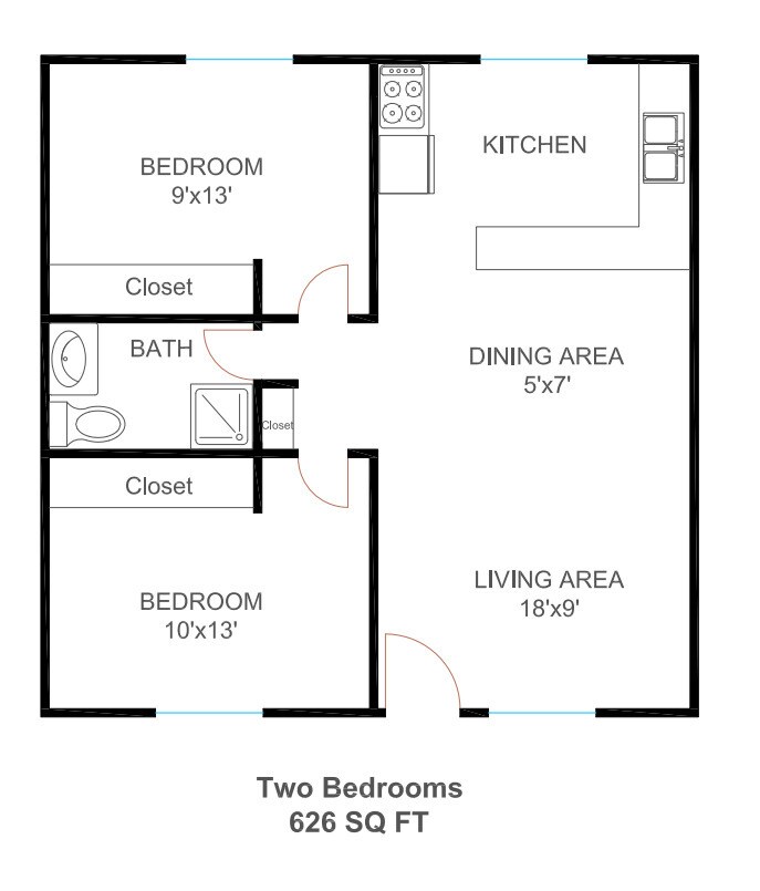 2 Dormitorios, 1 Baño, 626 pies²Disponible AhoraGalería del Modelo