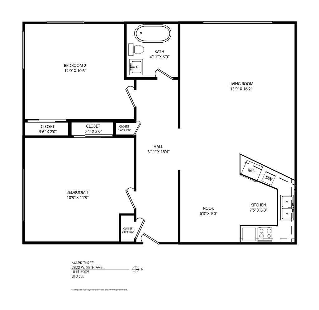 Modelo de apartamento: 2 Bedroom x 1 Bath2 Dormitorios, 1 Baño, 810 sq ftNo Disponible![]()