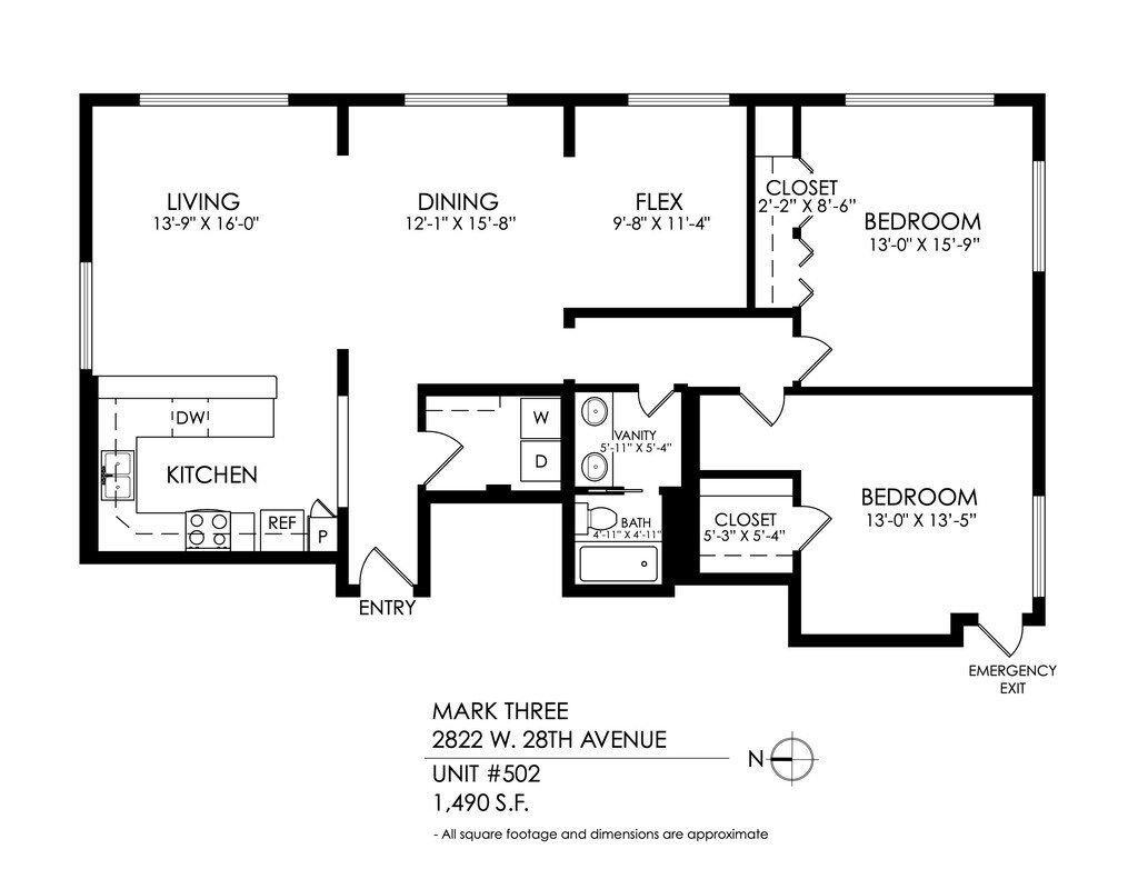 1 Bedroom x 1 Bath - Plano 3 2 Dormitorios