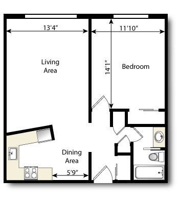 1 Bedroom x 1 Bath - Plano 1 ![]()