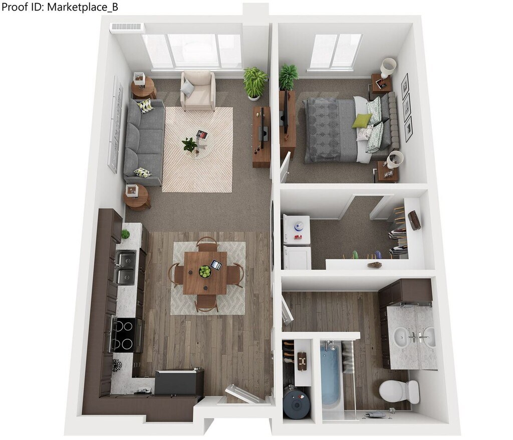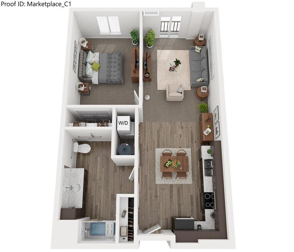 Marketplace ofrece un estudio único, apartamentos de un dormitorio y de dos dormitorios. El patio en la azotea es un lugar excelente para reunirse y disfrutar del exterior. Cada unidad tiene un acceso inteligente con cerrojos que proporciona un acceso fácil y seguro al apartamento. Acceso a Internet de alta velocidad en cada unidad. Algunas de las comodidades de estos apartamentos bien equipados son una estación de lavado de mascotas, un conducto de basura, modernos cubreventanas, lavadora/secadora, gabinetes de calidad y electrodomésticos de acero inoxidable.
