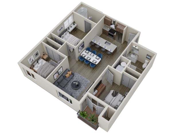Modelo de apartamento: 2x2 - C3Desde $2,1482 Dormitorios, 2 Baños, 823 sq ftDisponible Ahora![]()