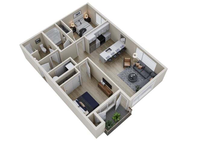 2 Dormitorios, 2 Baños, 953 pies²El más grandeEsta opción tiene las unidades más grandes para este modeloGalería del Modelo