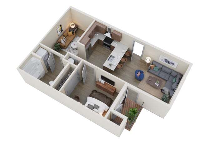 2 Dormitorios, 1 Baño, 895 pies²Disponible AhoraGalería del Modelo