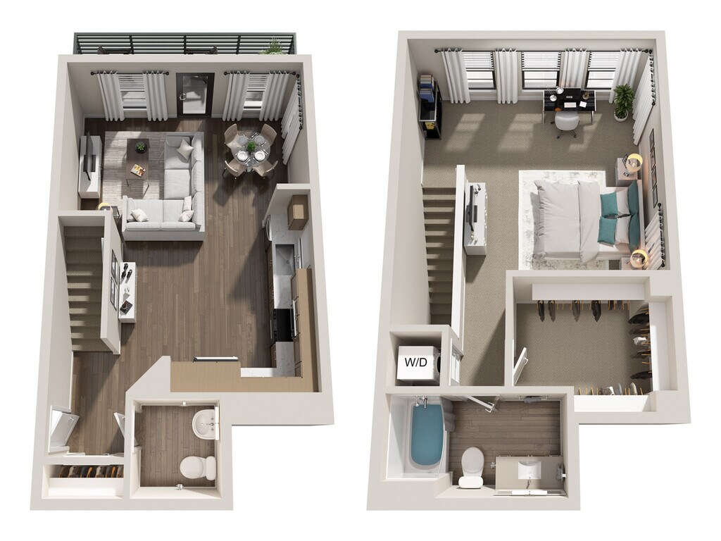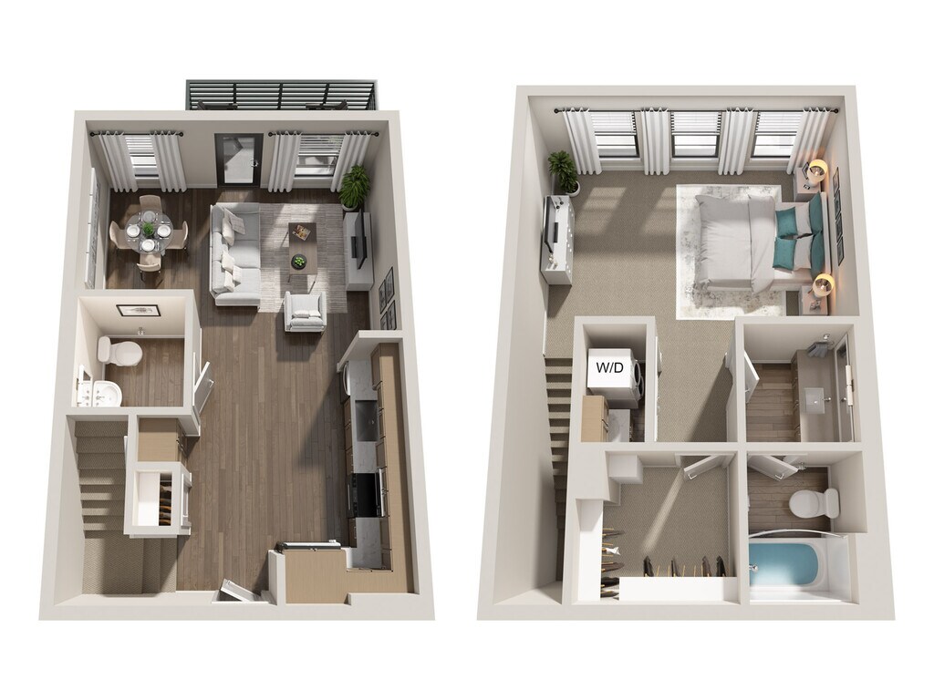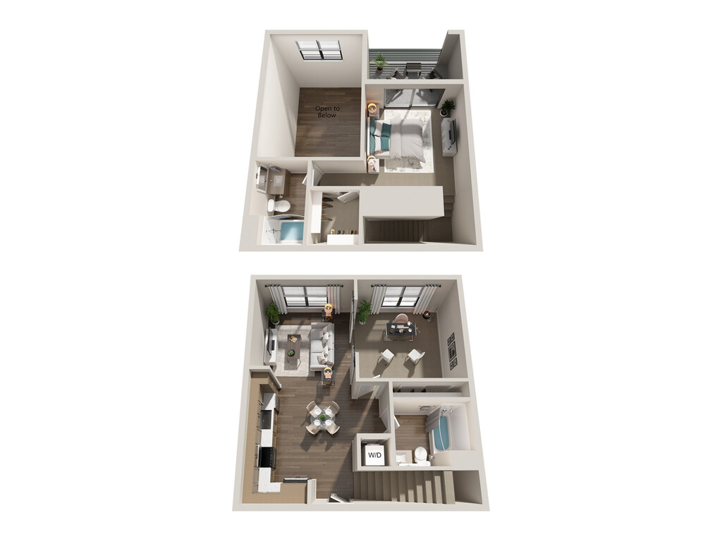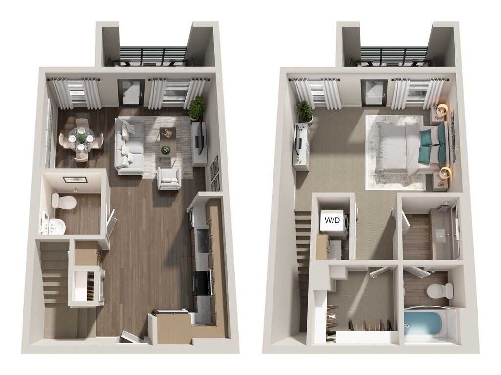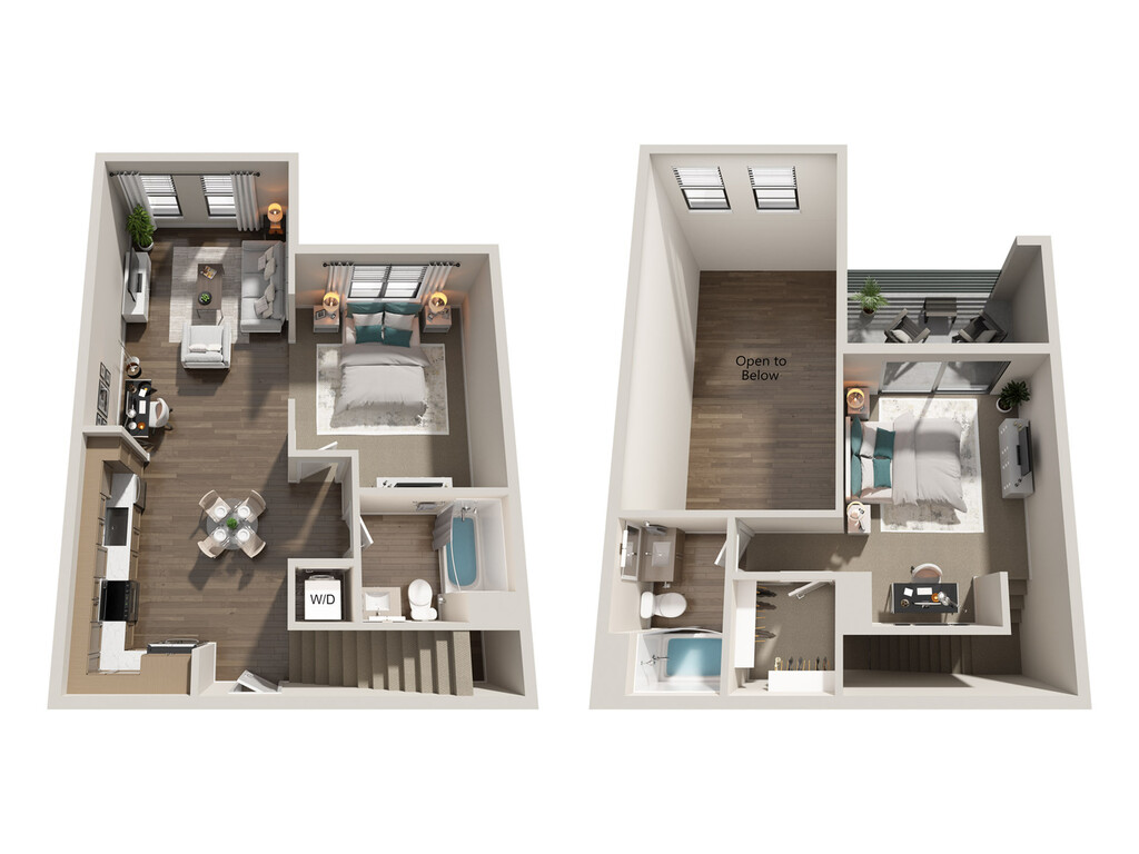 1 Dormitorio, 1.5 Baños, 974-989 pies²Disponible AhoraGalería del Modelo