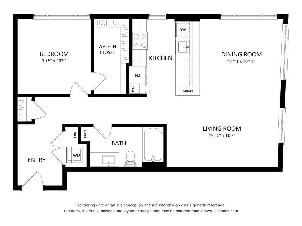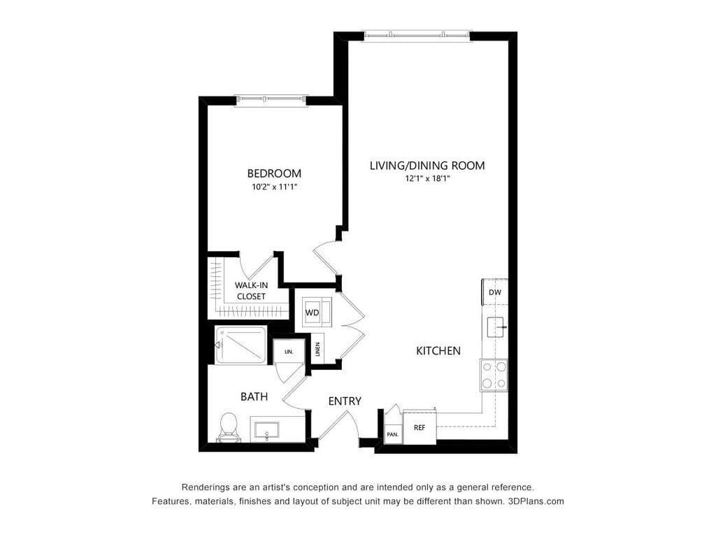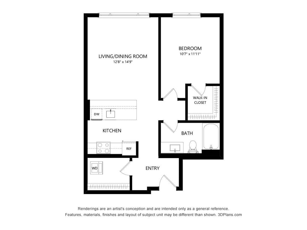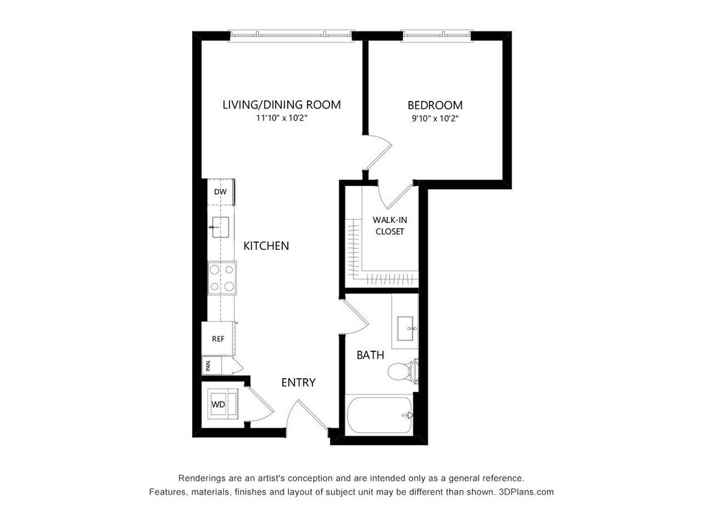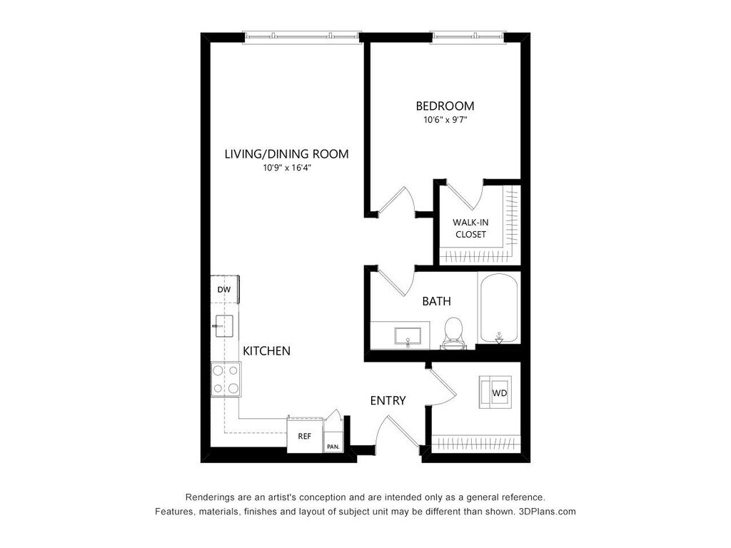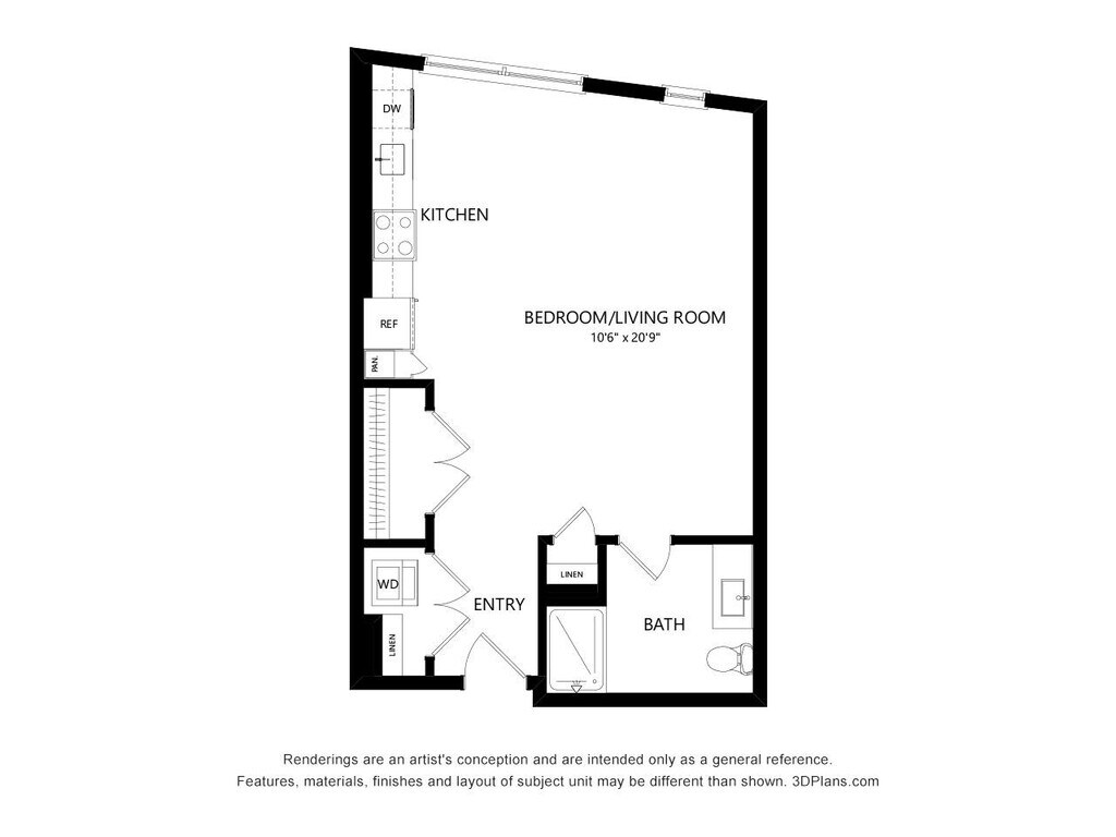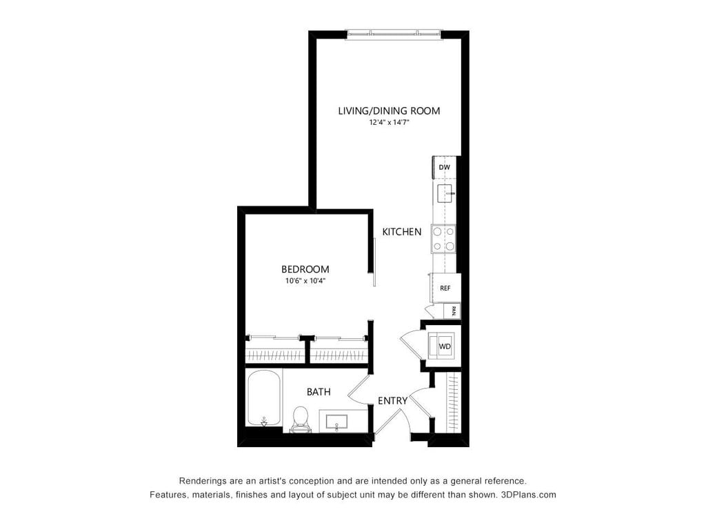 Estudio, 1 Baño, 565 pies²Disponible AhoraGalería del Modelo