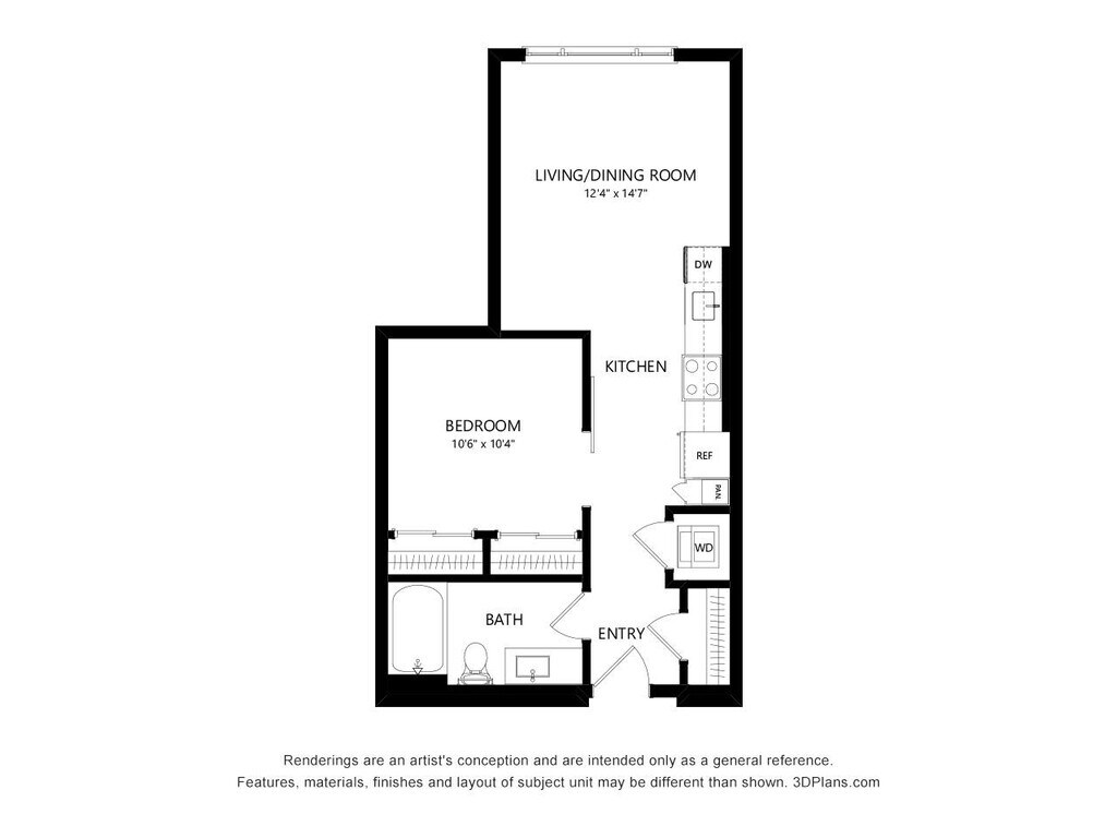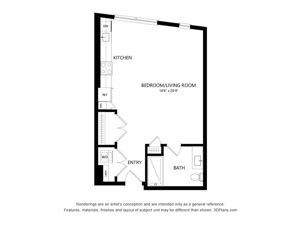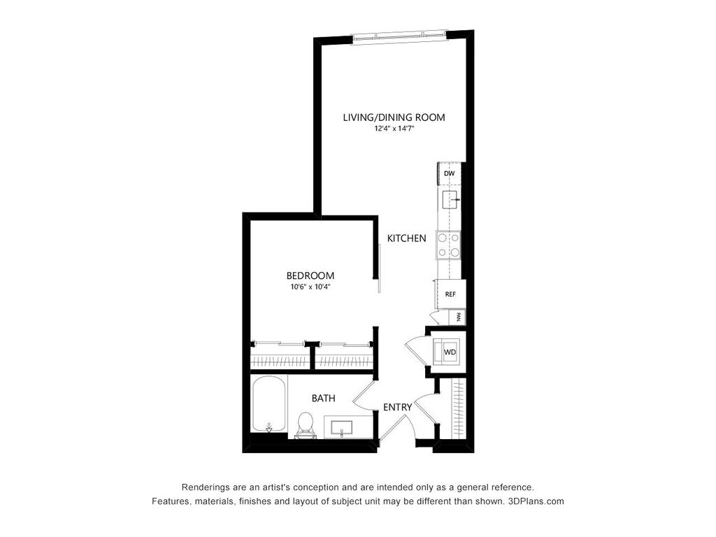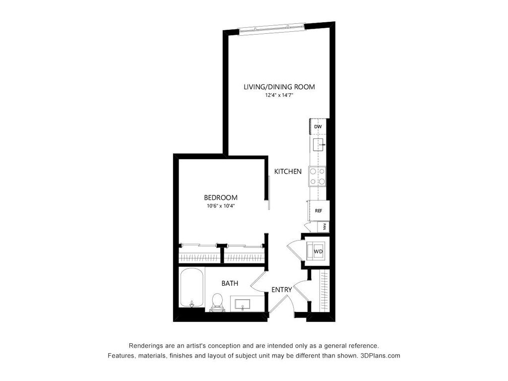 Estudio, 1 Baño, 583 pies²Disponible AhoraGalería del Modelo