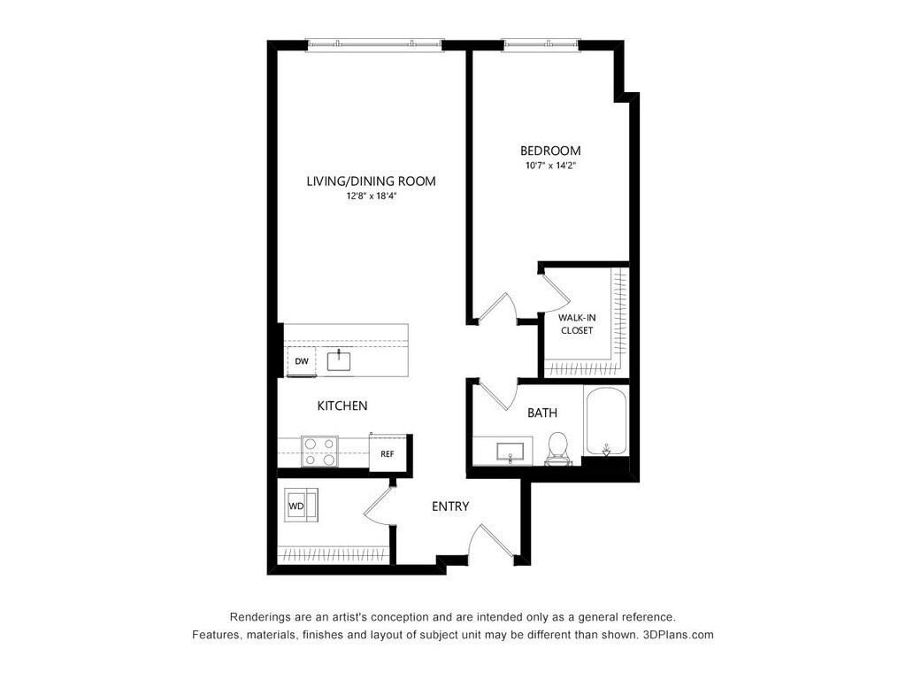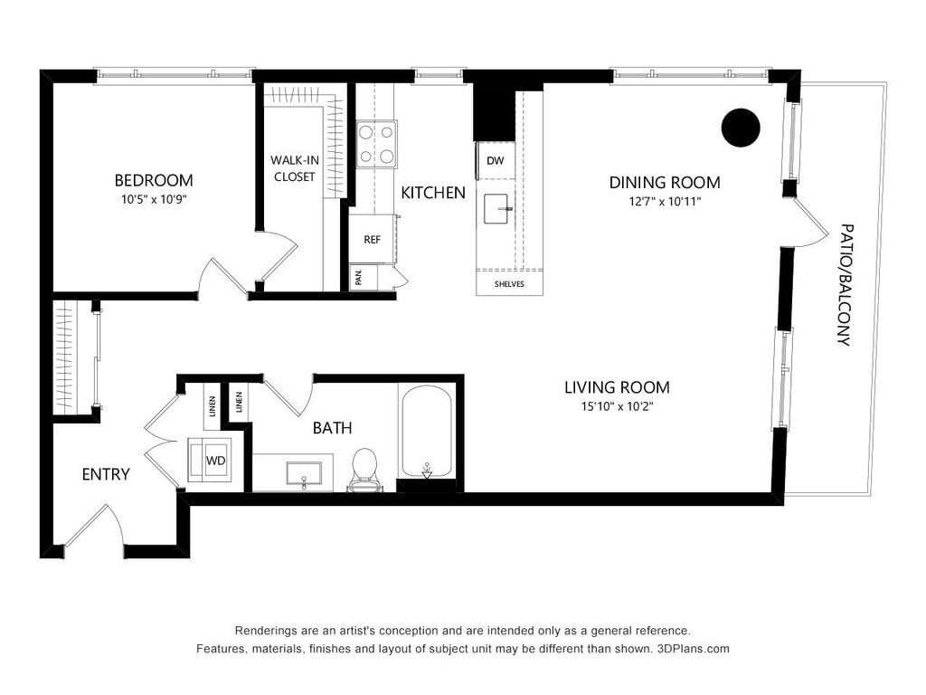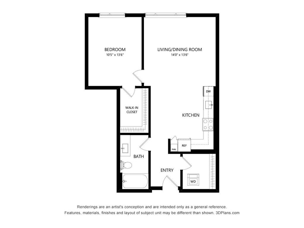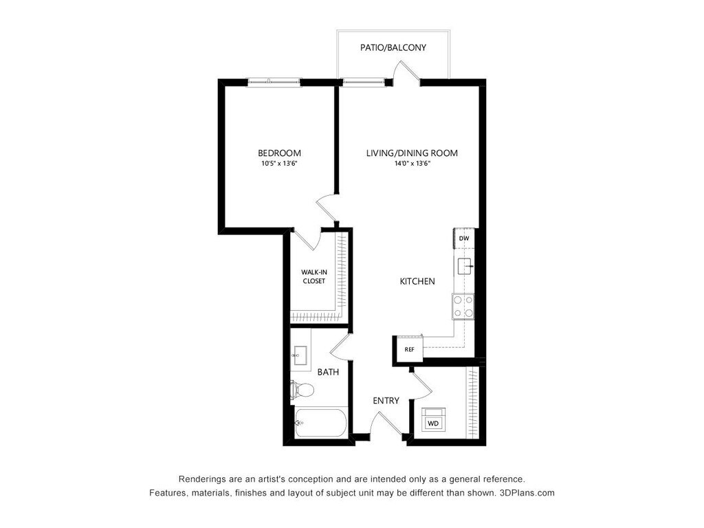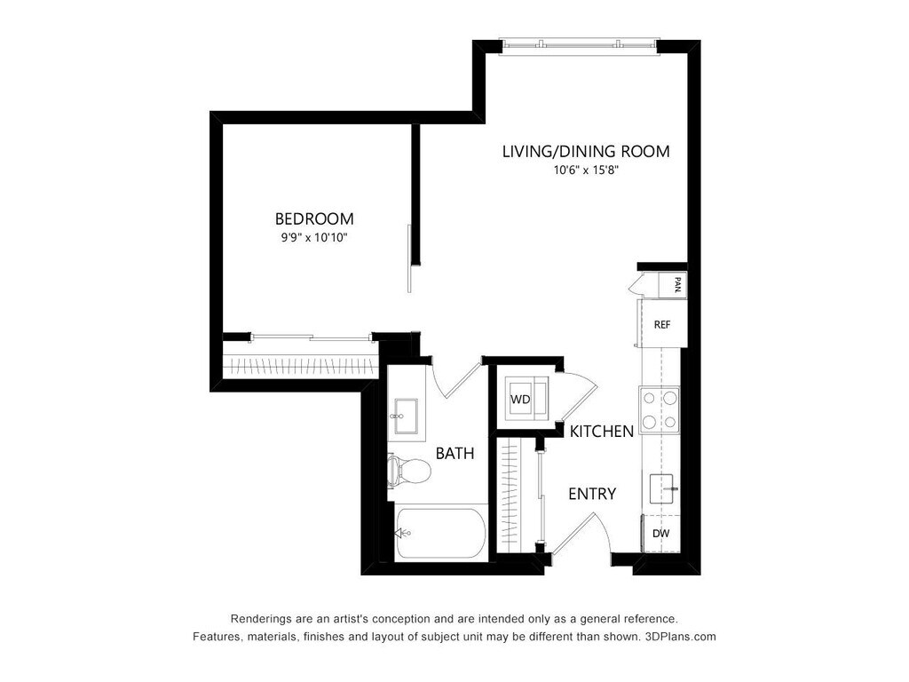 Estudio, 1 Baño, 583 pies²Disponible AhoraGalería del Modelo