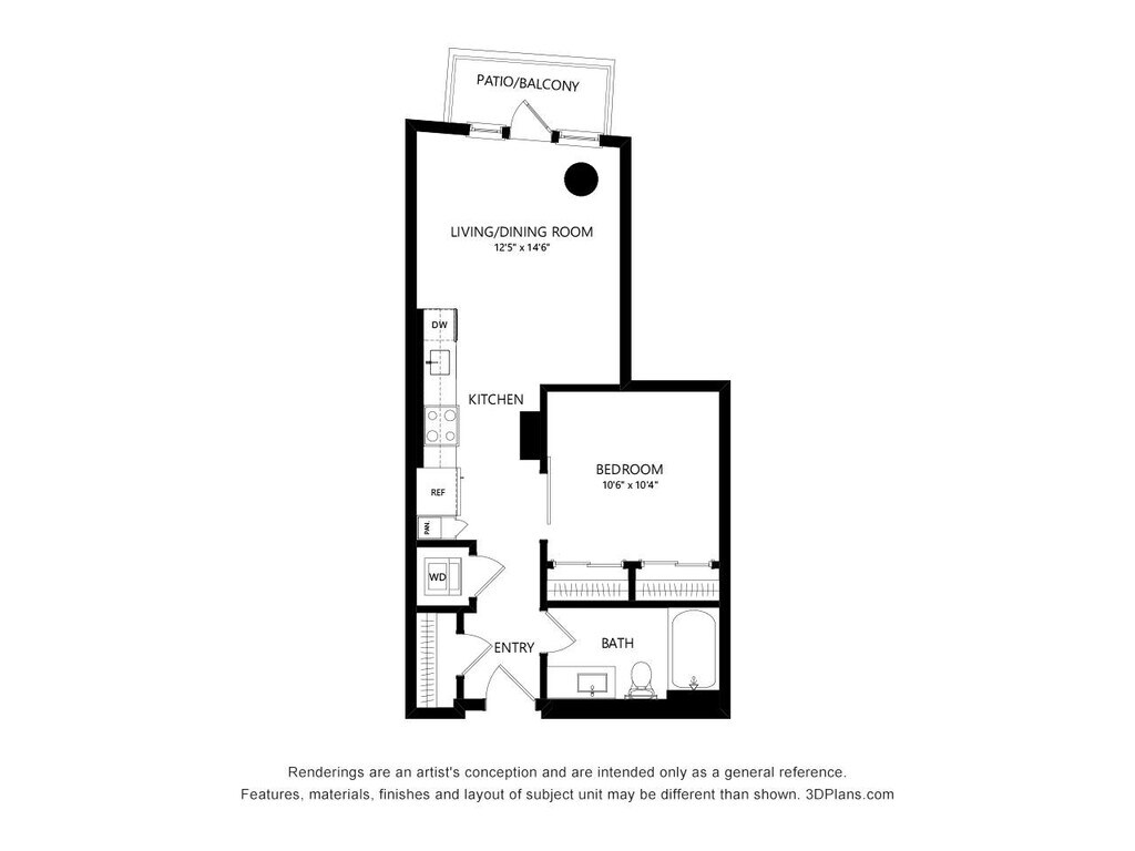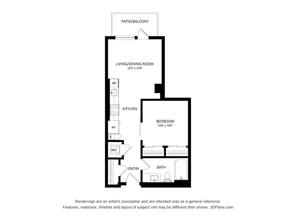e10i - Plano 1 Unidad de apartamento: 614Modelo de apartamento: e10i$2,230Estudio, 1 Baño, 565 sq ftDisponible Ahorae10m