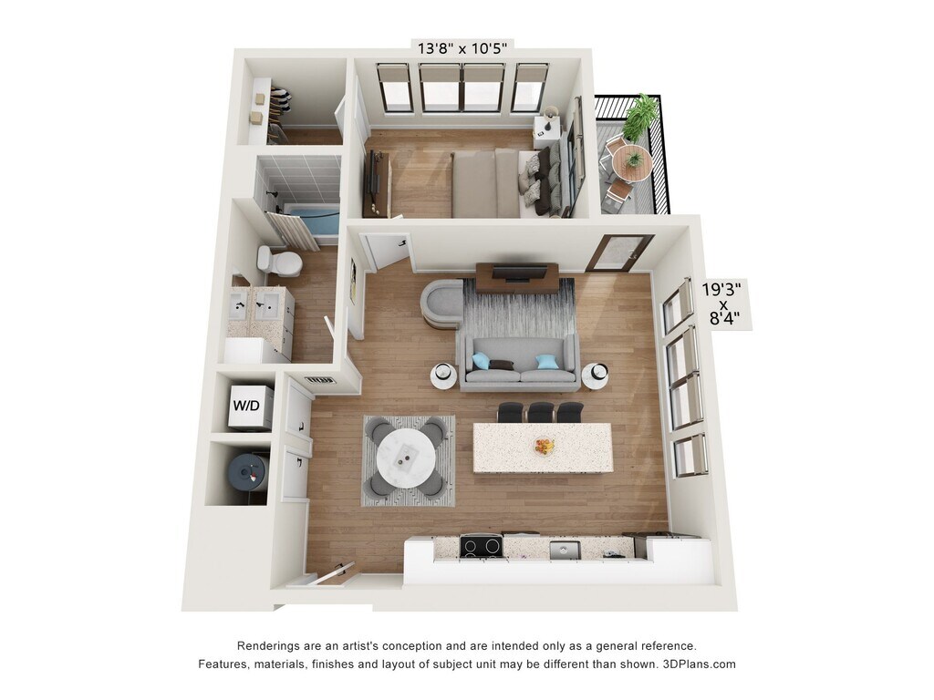 Modelo de apartamento: ChaplinDesde $1,8001 Dormitorio, 1 Baño, 582 sq ftDisponible Ahora![]()