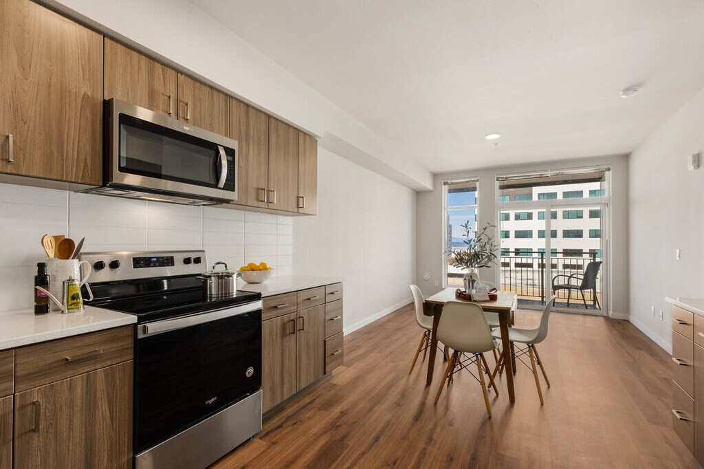 TU BOLETO A LA ZONA DE VIDA URBANA Disfruta de un musical de Broadway. Celebra una victoria de los Silvertips. Encuentra los ingredientes orgánicos perfectos en el mercado de productores. Todo se encuentra a muy poca distancia de tu puerta principal. En Marquee Apartments, disfrutarás de asientos en primera fila para lo mejor de la vida urbana en Everett. Disfruta de las cervecerías locales, vibrantes tiendas de café y una divertida variedad de restaurantes para satisfacer todos tus antojos. Y cuando hayas terminado de explorar, puedes retirarte a la comodidad de la vida moderna: electrodomésticos de acero inoxidable, ventanas amplias, acabados lujosos y vistas de la ciudad y las montañas. La vida es tu escenario. ¡Tú eres la estrella!