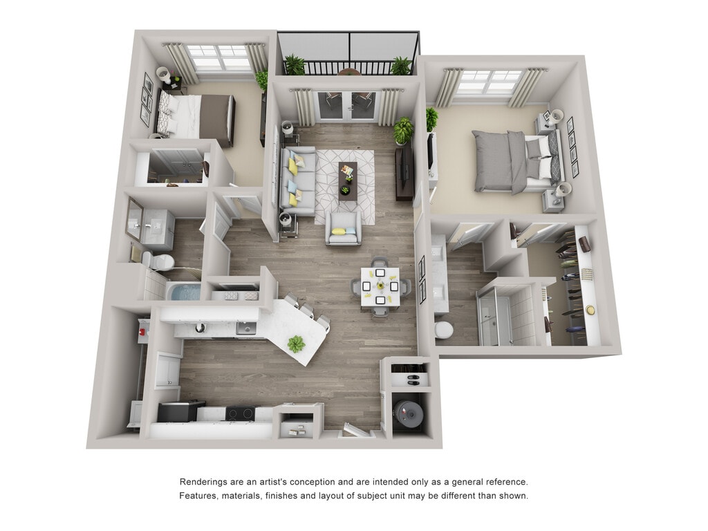 Modelo de apartamento: B1Desde $2,7152 Dormitorios, 2 Baños, 1165 sq ftDisponible Ahora![]()