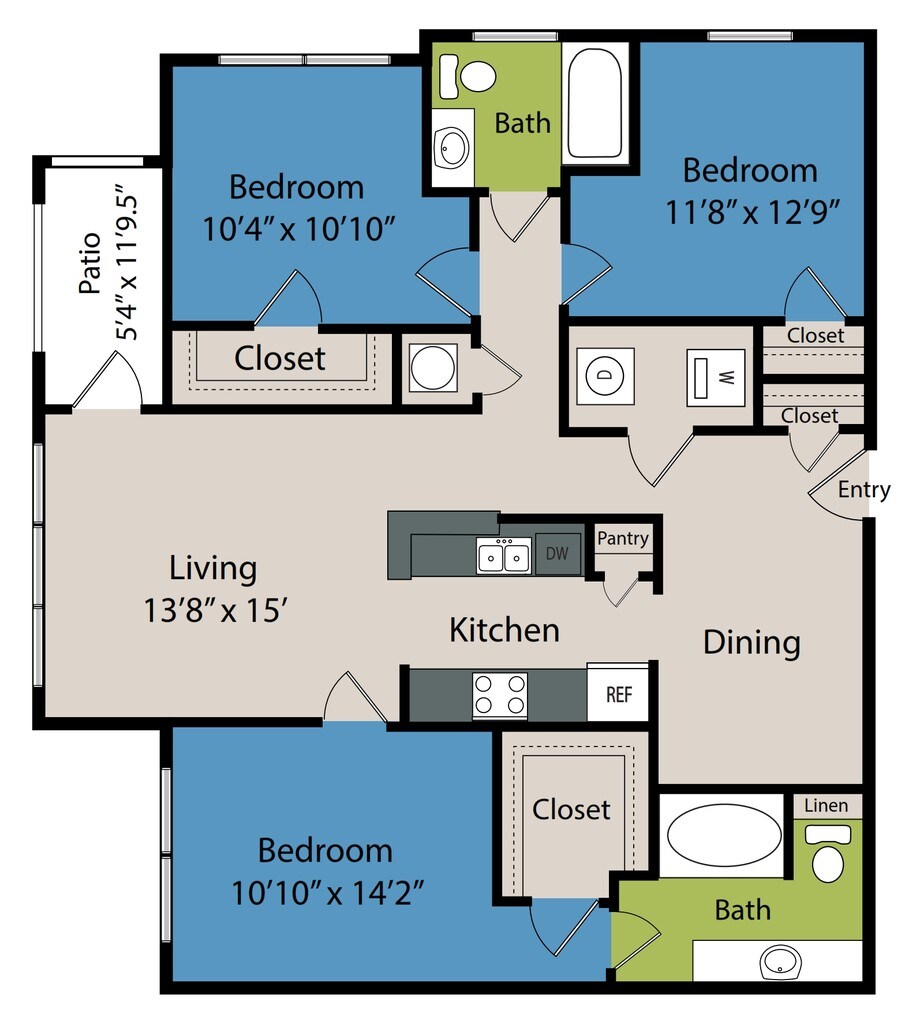 2 Dormitorios, 1 Baño, 1082 pies²Disponible AhoraGalería del Modelo