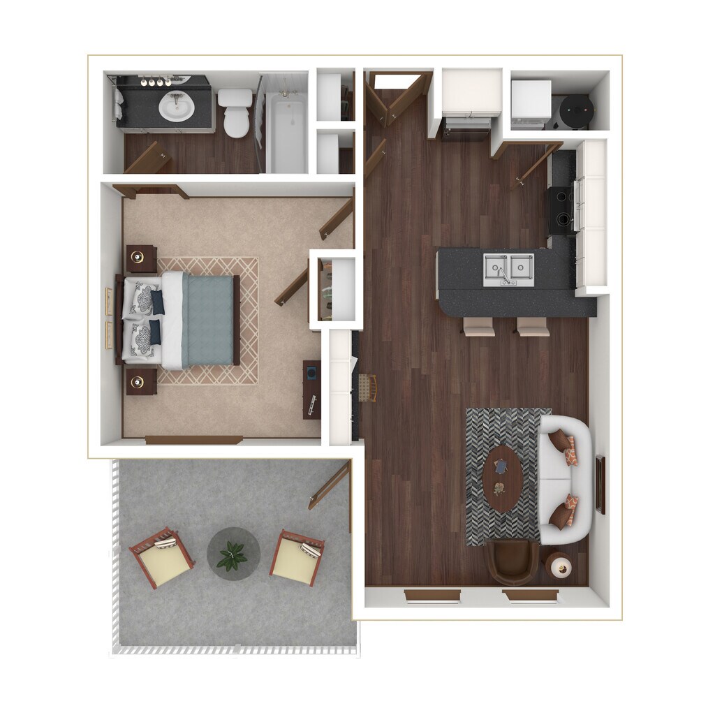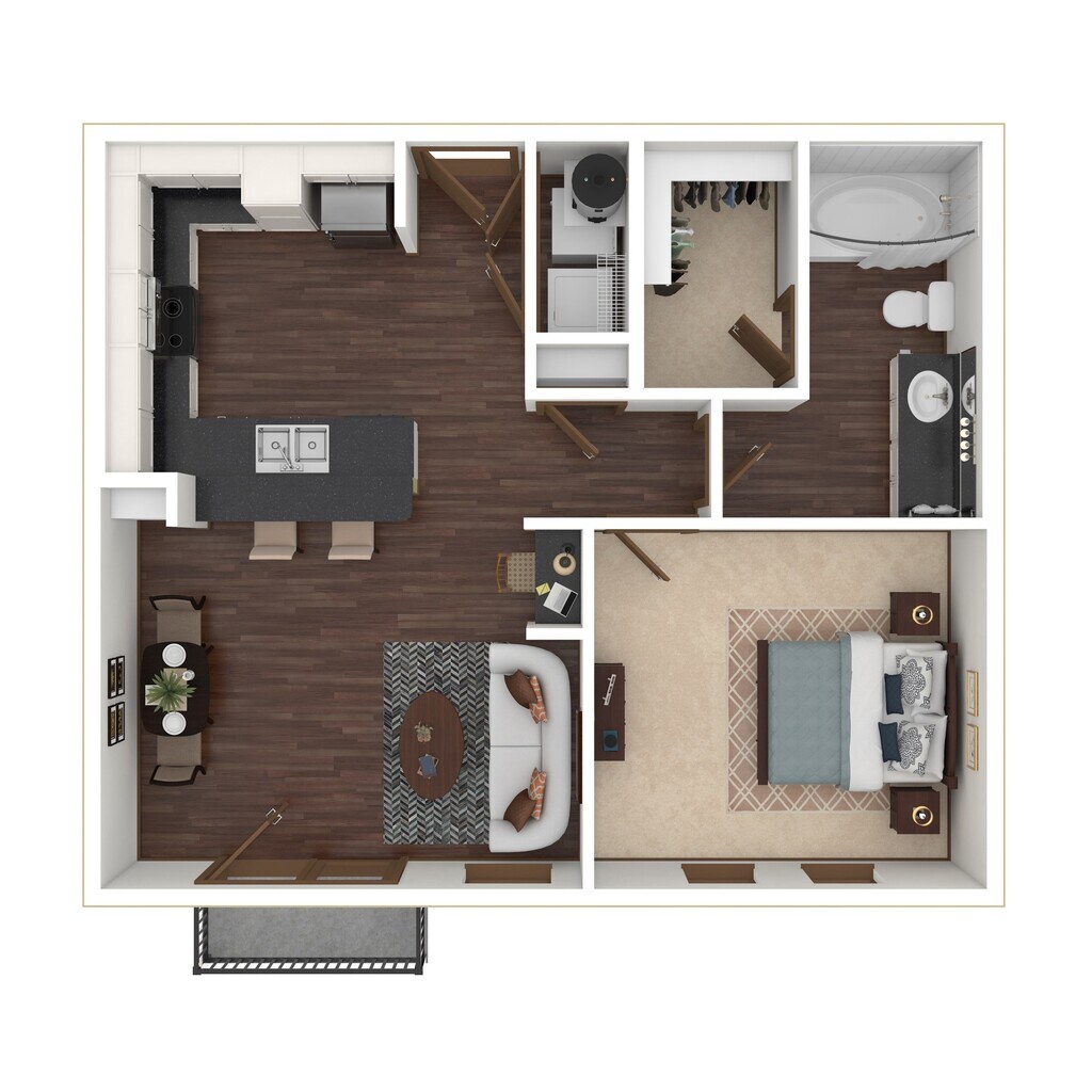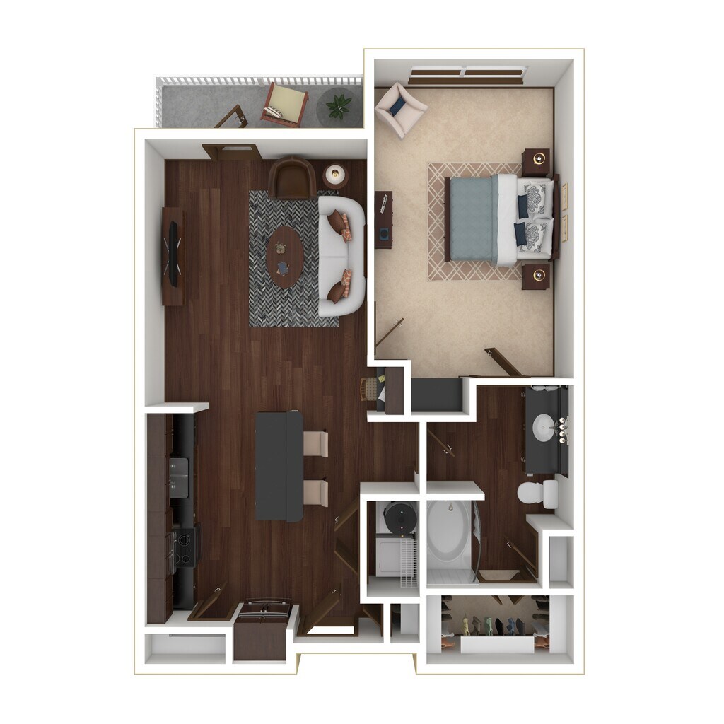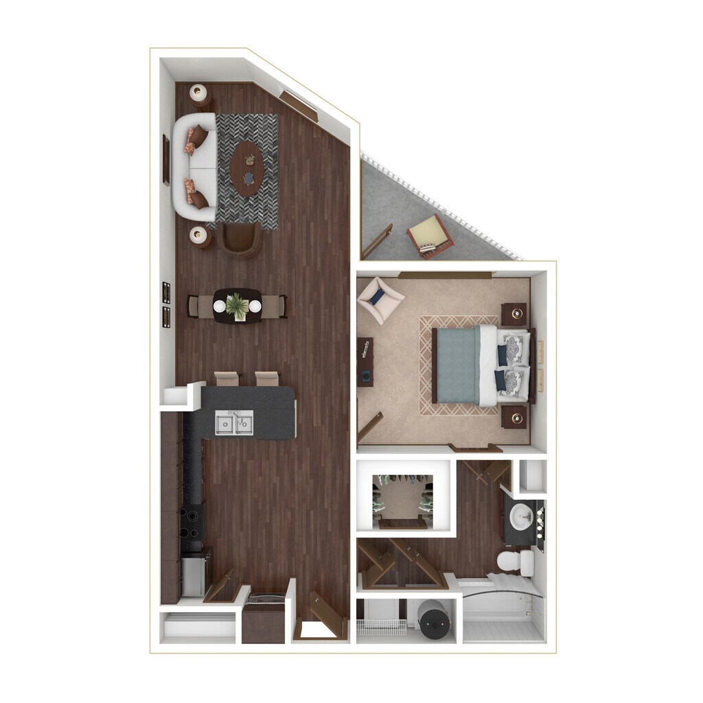 Modelo de apartamento: 1D1 Dormitorio, 1 Baño, 647 sq ftDisponible Ahora![]()