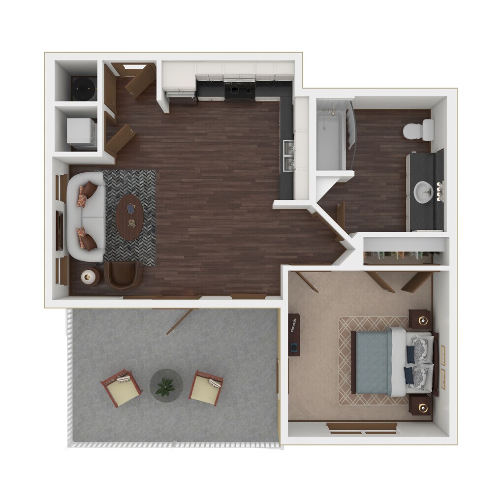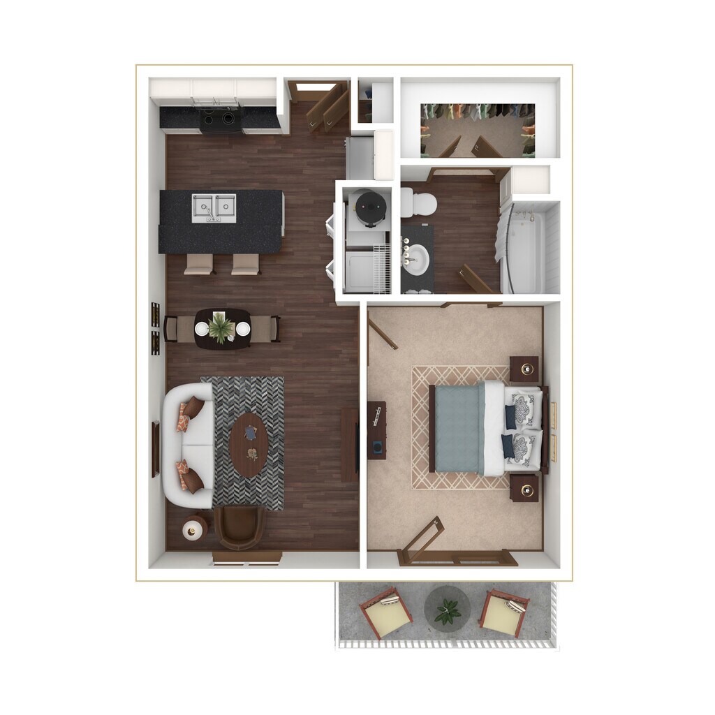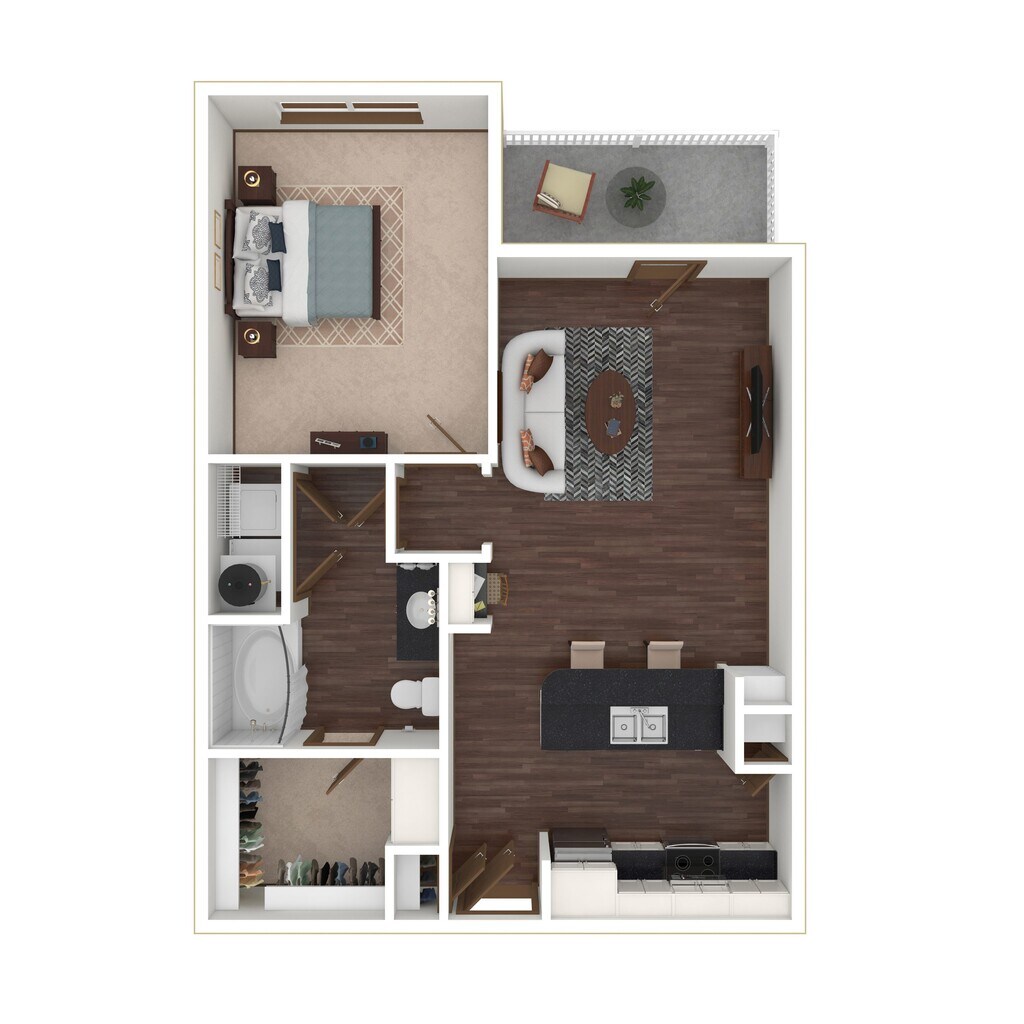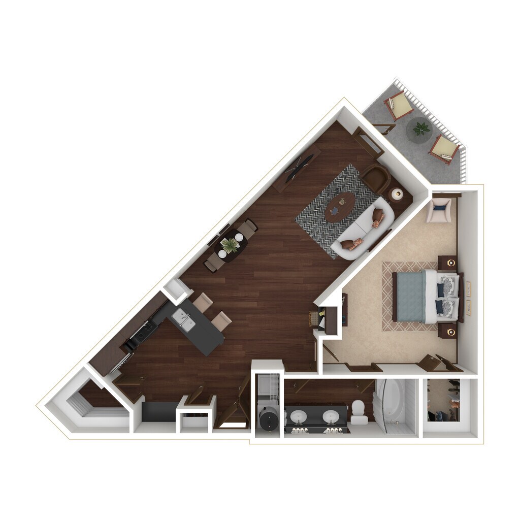 Modelo de apartamento: 1D1 Dormitorio, 1 Baño, 647 sq ftDisponible Ahora![]()