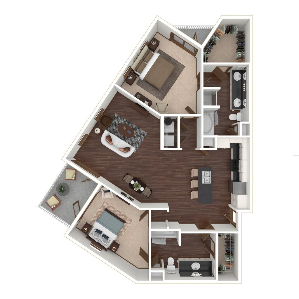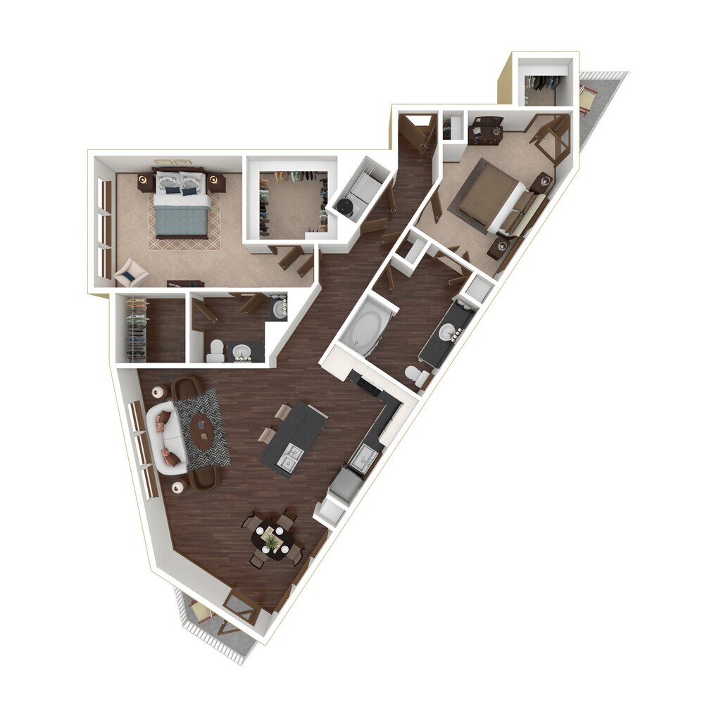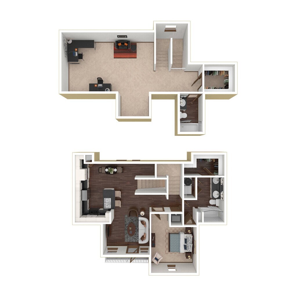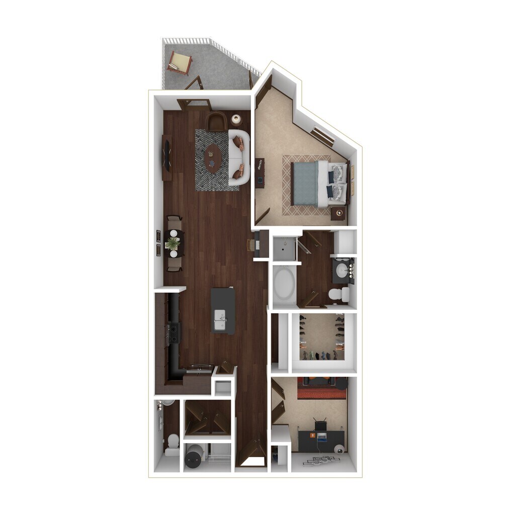 Modelo de apartamento: 1D1 Dormitorio, 1 Baño, 647 sq ftDisponible Ahora![]()