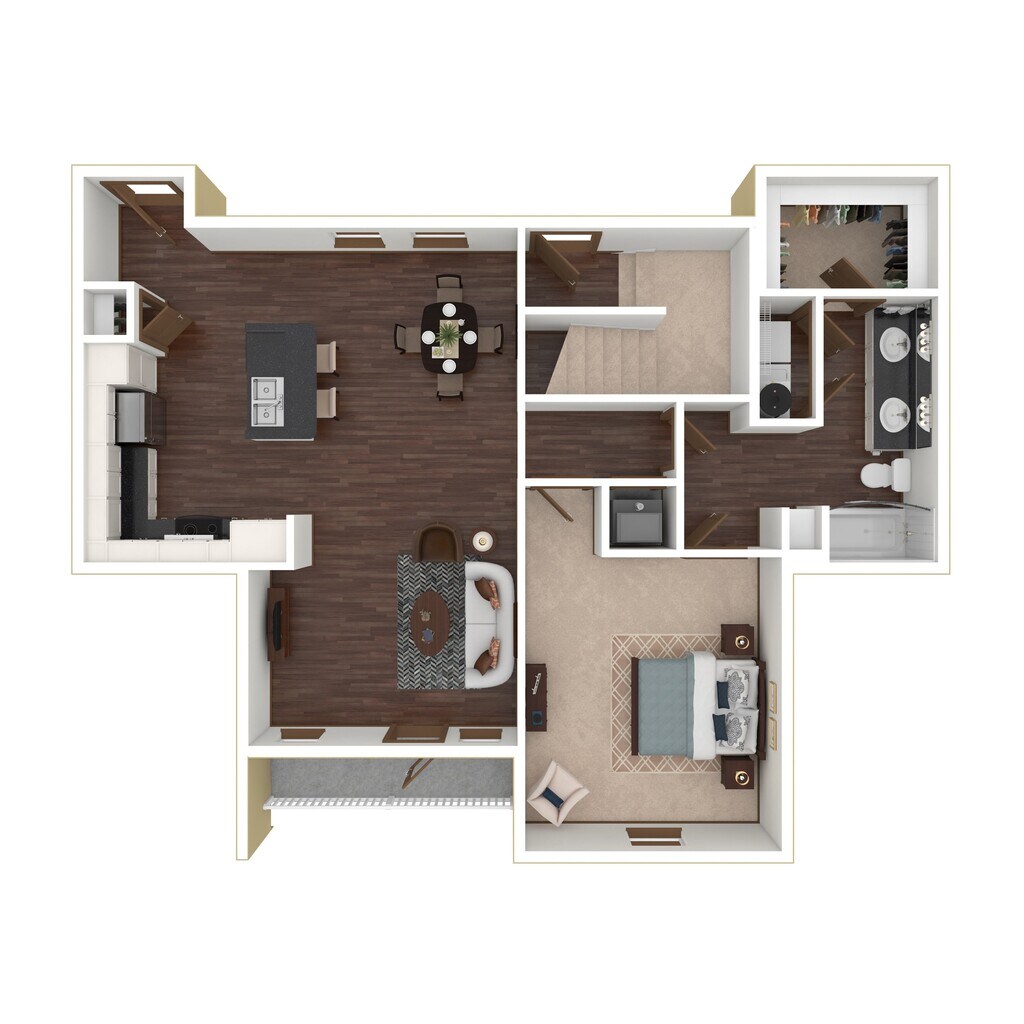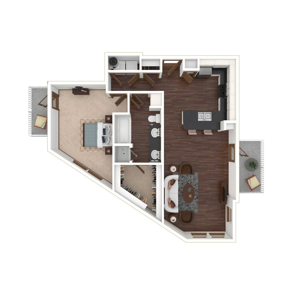 1 Dormitorio, 1 Baño, 647 pies²Disponible AhoraGalería del Modelo