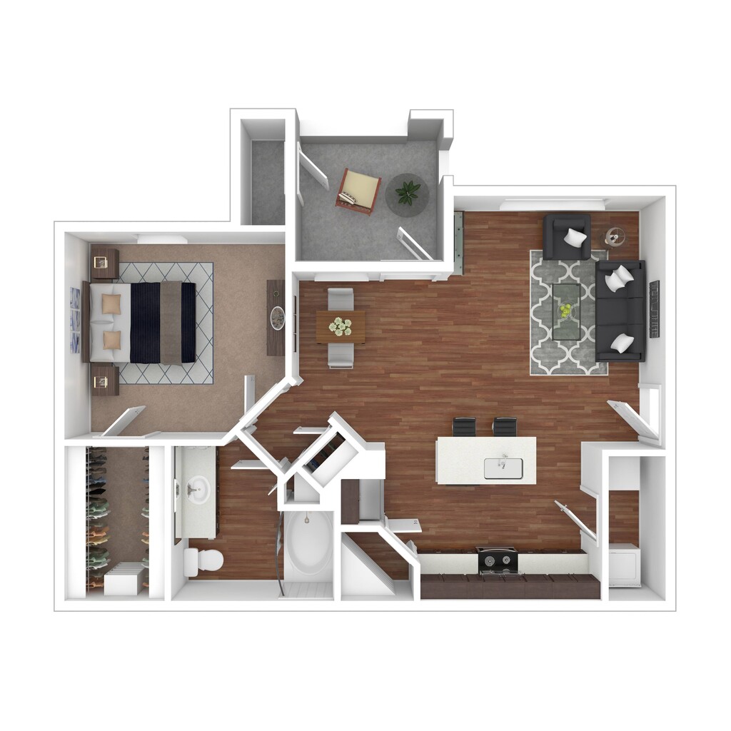 1 Dormitorio, 1 Baño, 765 pies²Disponible AhoraGalería del Modelo