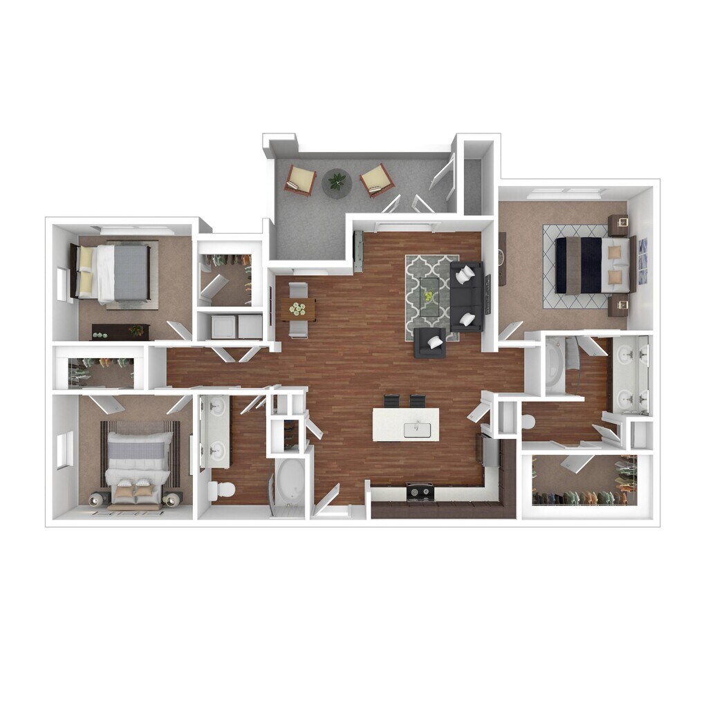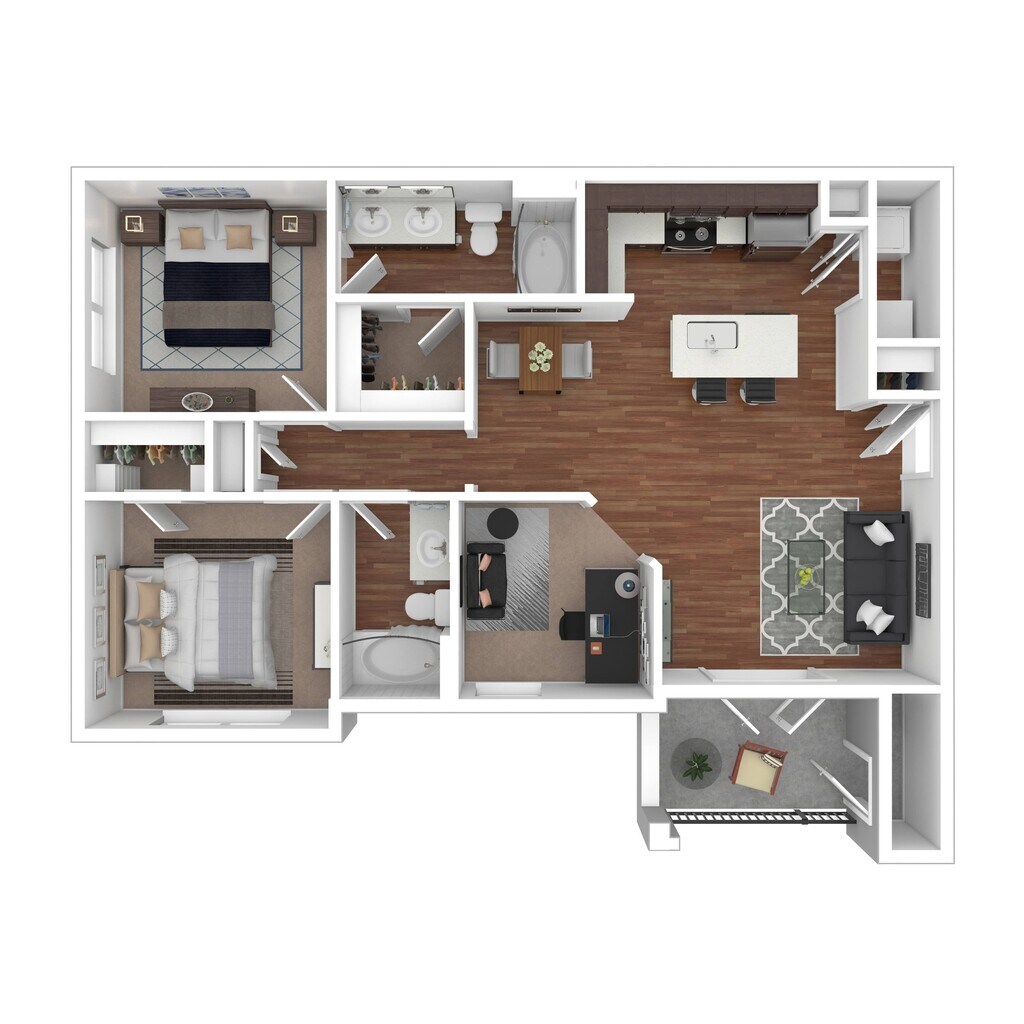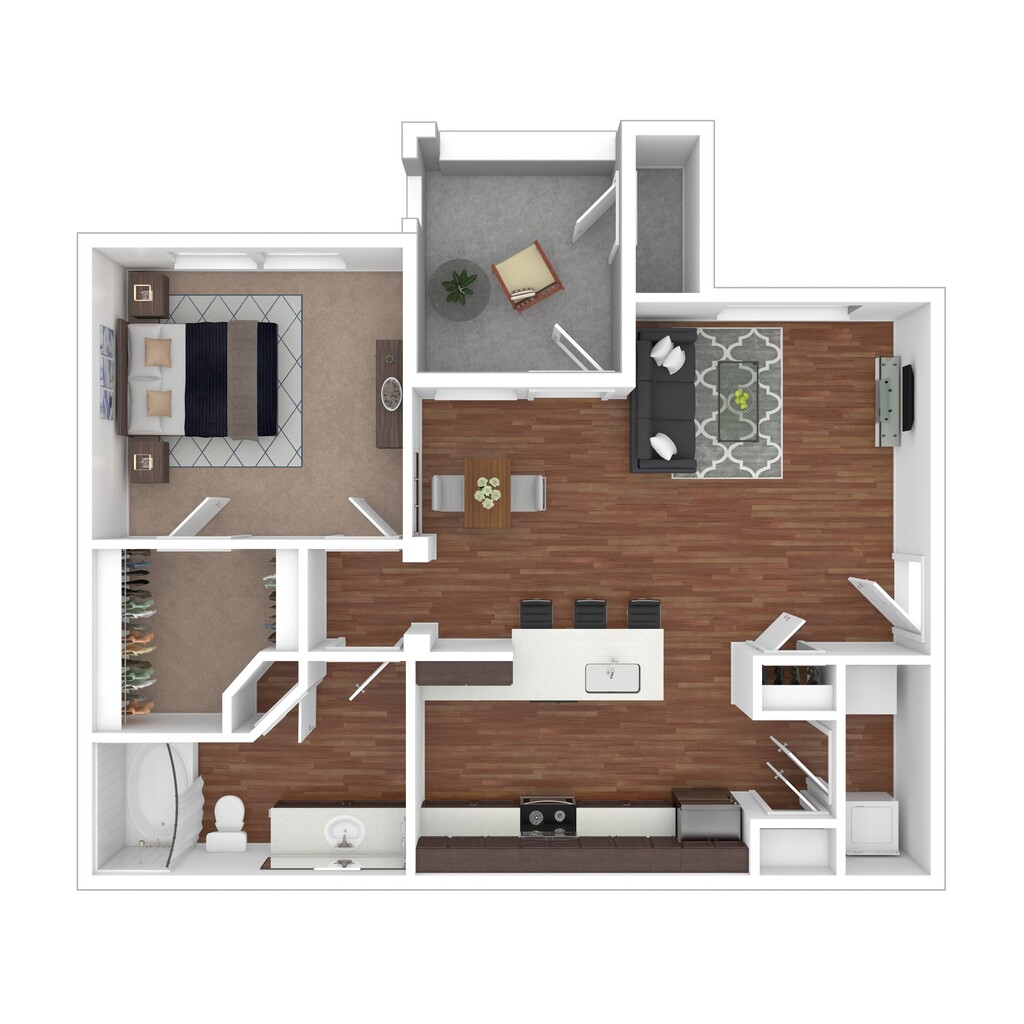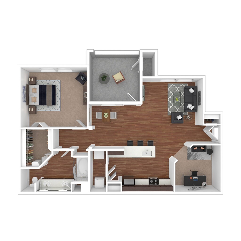 Modelo de apartamento: 1CDesde $1,1651 Dormitorio, 1 Baño, 765 sq ftDisponible Ahora![]()
