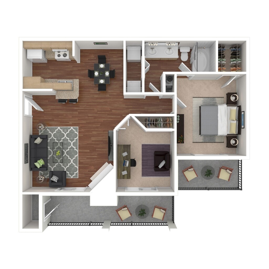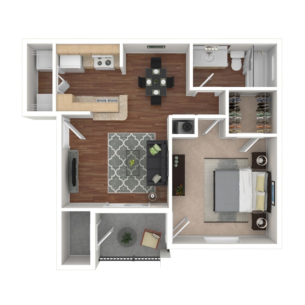 Modelo de apartamento: 1ADesde $9851 Dormitorio, 1 Baño, 641 sq ftDisponible Ahora![]()