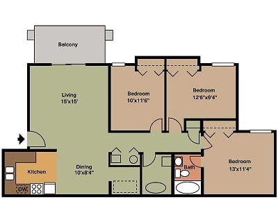 Modelo de apartamento: 2X1.5 THV$1,5302 Dormitorios, 1.5 Baños, 1050 sq ftDisponible Ahora![]()