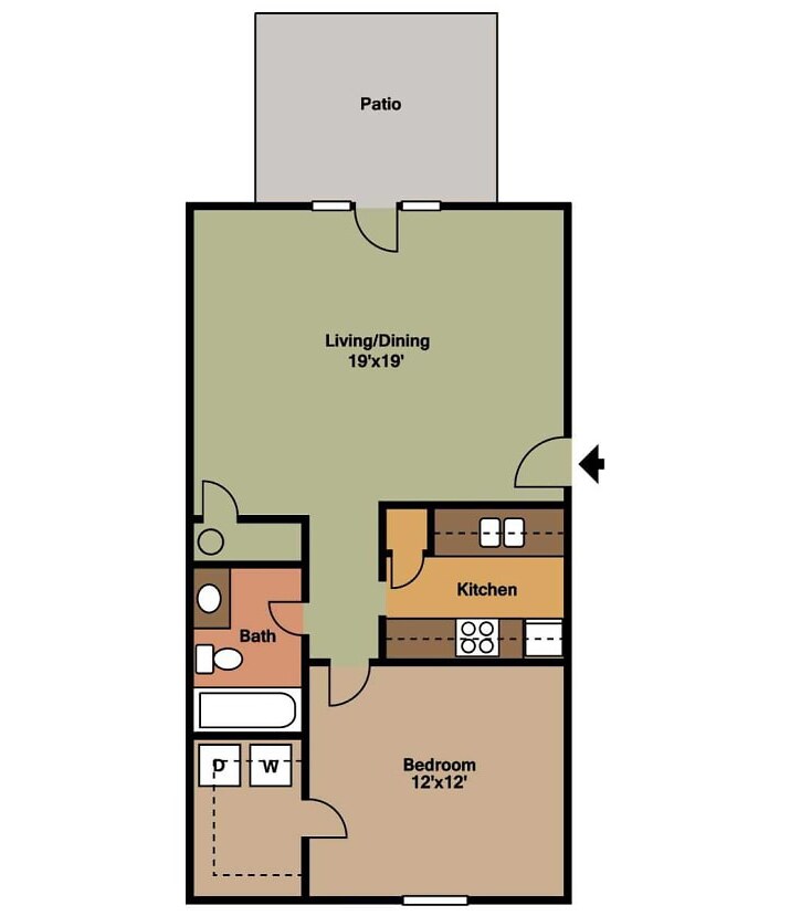 1 Dormitorio, 1 Baño, 800 pies²Disponible AhoraGalería del Modelo