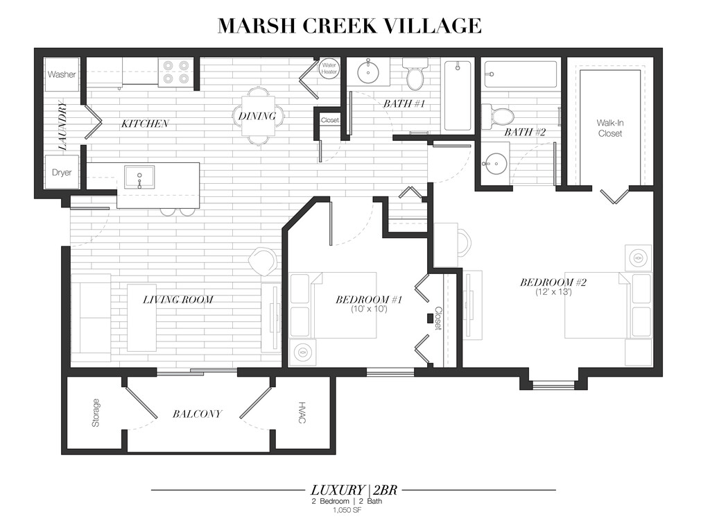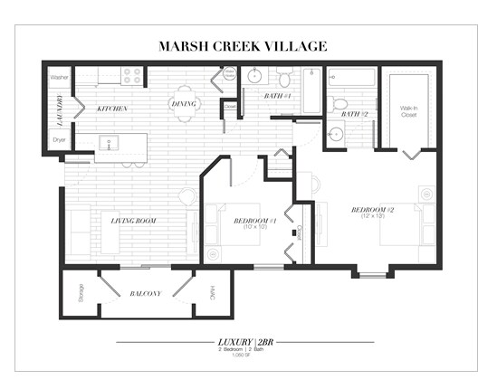 Modelo de apartamento: Two Bedroom Luxury2 Dormitorios, 2 Baños, 1050 sq ftDisponible Ahora![]()