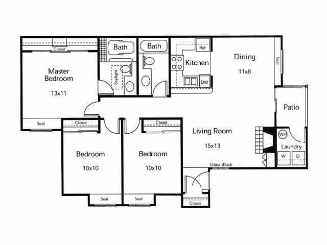 3 Dormitorios, 2 Baños, 1200 pies²Precio Mensual TotalDisponible AhoraGalería del Modelo