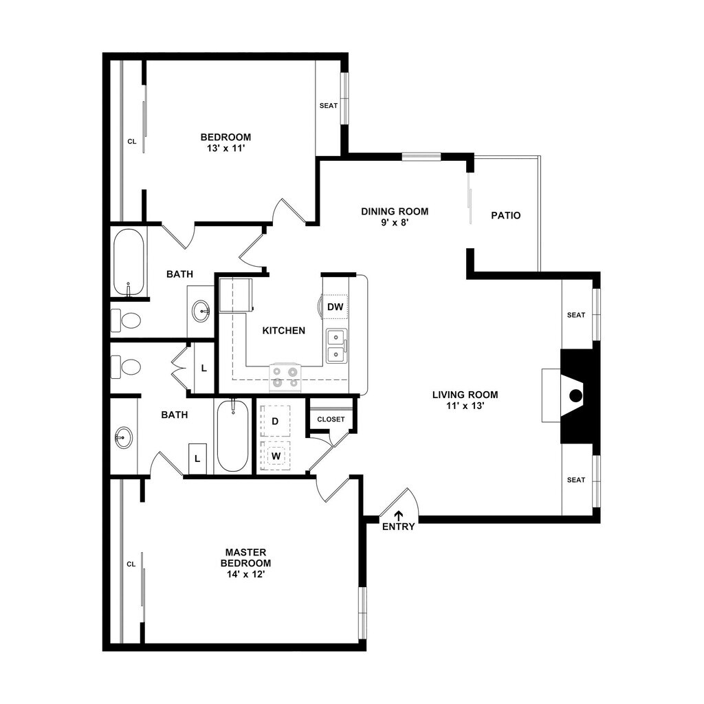 Modelo de apartamento: B2$1,7162 Dormitorios, 2 Baños, 1070 sq ftNo DisponibleLos planos de la planta son una interpretación artística. Todas las dimensiones son aproximadas. Los tamaños o el detalle del producto real y sus especificaciones pueden variar. No todas las características están disponibles en todos los hogares para rentar. Los precios y la disponibilidad están sujetos a cambios. El alquiler que se muestra es mensual. Se pueden aplicar ciertos cargos, por ejemplo, entrega de paquetes, recolección de basura, agua, servicios, etc. Depositos varian. Consulta a un representante para conocer detalles.